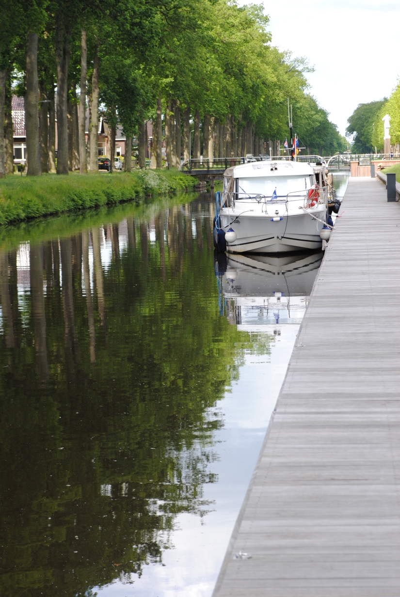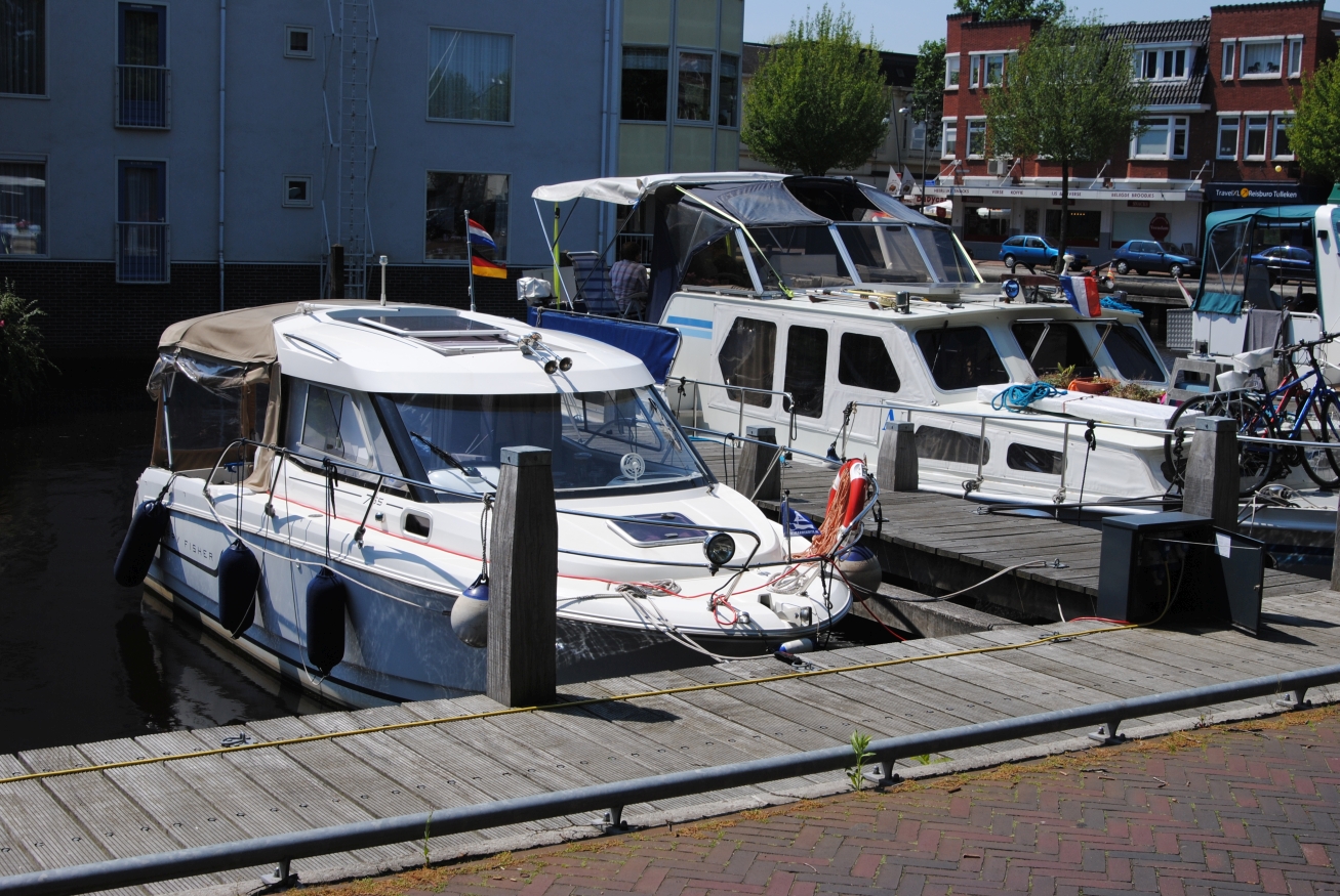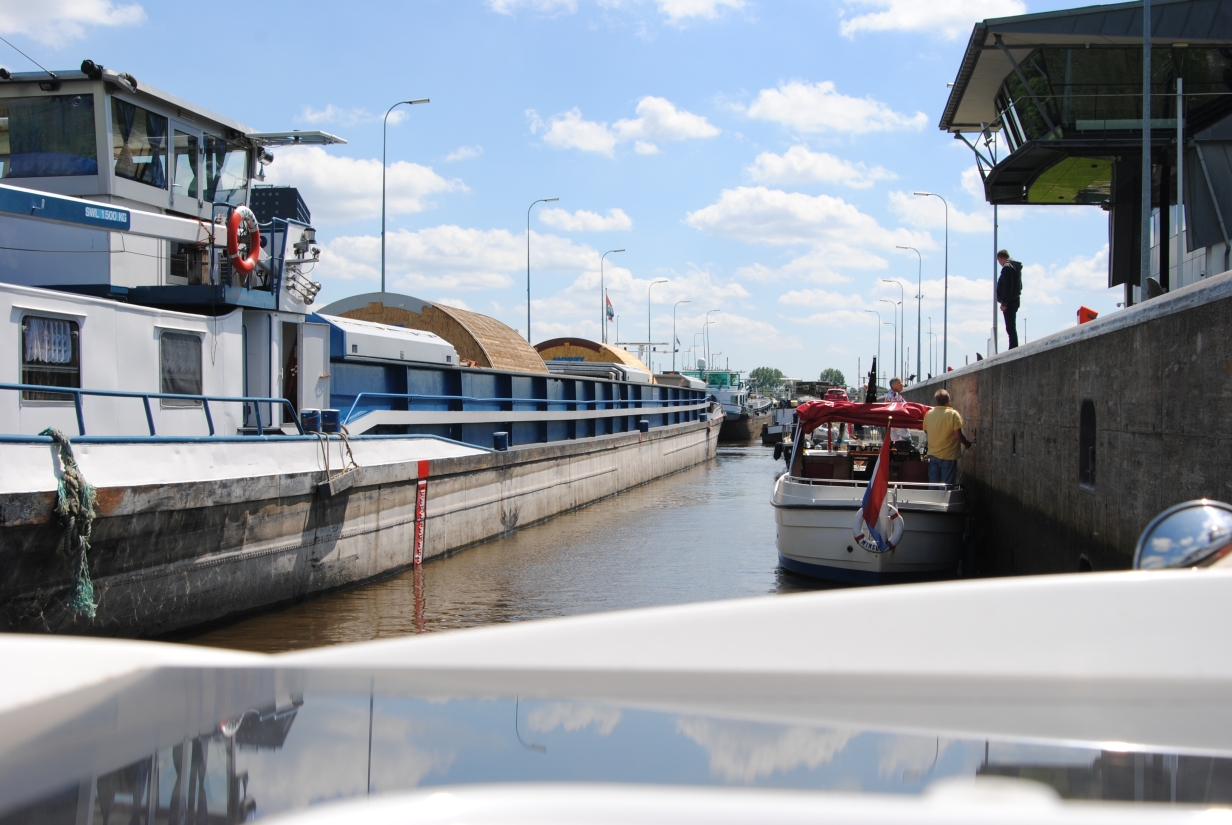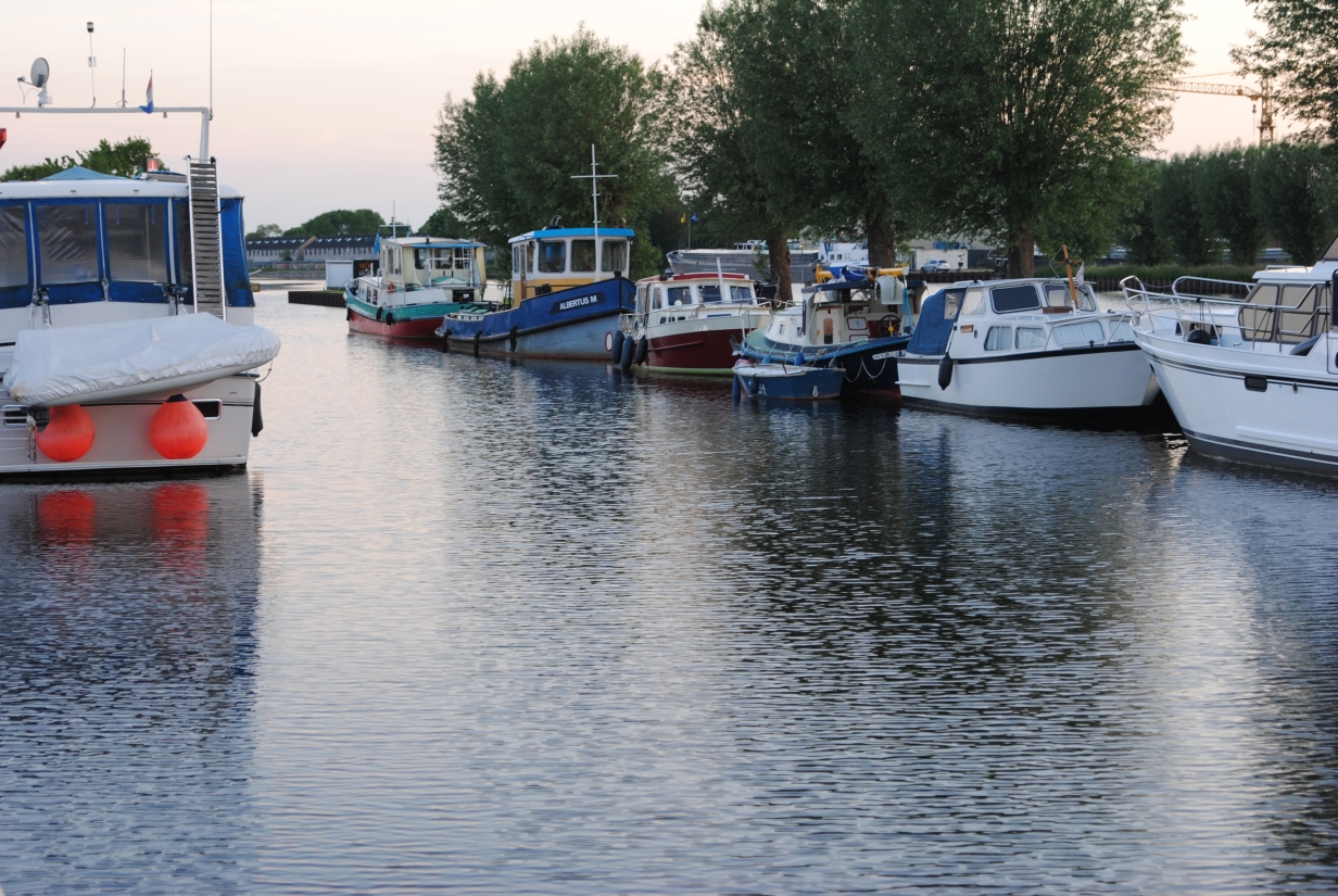 Törn Emmerich - Zwartsluis - Bergum - Groningen - Haren - DEK/RHK/Rhein - Emmerich - mathias - 09.07.2015 Der Törn: Emmerich - Zutphen - Zwartsluis - Echtenerbrug - Bergum - Groningen - Veendam - Ter Apel - HRK - Ems/DEK - RHK - Rhein - Emmerich Die Tour als GPS-Track Die komplette Tour als GIF-Animation Freitag, 29.05.2015 (Für eine größere Ansicht auf das Bild klicken)Um 8:30 Uhr geht es los, zuerst einmal mit dem Auto nach Emmerich. Das geht ganz problemlos, kein Stau, kein dichter Verkehr, so dass ich um 10 Uhr am Hafen bin. Da ich die Woche zuvor schon alles an Bord gebracht und verstaut hatte, geht das aufklaren sehr schnell. Ich informiere noch eben die Hafenmeisterin, damit sie nicht denkt, das Boot wäre gestohlen, wenn es nun ein paar Tage nicht an seinem Platz liegt, dann geht es auch schon los. Abfahrt ist ziemlich genau 11 Uhr, somit müsste ich, zumindest nach meiner Kalkulation, so gegen 15:30 Uhr in Zutphen ankommen. Der Rhein von Emmerich bis Lobith ist trotz des kräftigen Windes relativ ruhig. Das liegt daran, dass der Wind aus Südost bläst, somit nicht gegen den Strom, sondern mehr von der Seite. Nach kurzer Zeit kommt der Abzweig des Griethorner Altrheins an backbord in Sicht, ab hier ist für mich Neuland, weiter war ich noch nie. Die wenige Kilometer später folgende Gabelung in Wal und Pannerdensch Kanaal habe ich mir spektakulärer vorgestellt. Die ist so unscheinbar, das ich zweimal überprüfe, ob ich hier wirklich nach steuerbord abdrehen muss. Aber die Verantwortlichen haben Hinweisschilder aufgestellt, die meine Zweifel zerstreuen. Na das ist ein Kontrast, vorher der „eigentliche“ Rhein, rau und ruppig und nun das hier, völlig ruhig und gemächlich fließt das Wasser dahin. Das Schöne daran ist, das man hier, genau wie auf dem Rhein, keine Geschwindigkeitsbegrenzung hat, von wenigen Ausnahmen abgesehen. Ich möchte aber etwas von der Gegend sehen und fahre daher ganz gemächlich mit ca. 15 km/h vor mich hin. Eigentlich fahre ich ja nur 10 km/h, die restlichen 5 steuert das fließende Wasser bei. Ach ja, hier habe ich die erste Begegnung mit einer „Gierseilfähre“, die in der Mitte des Flusses mit einem Anker fixiert ist, dessen Trosse dann über Ankerflöße bis zur Fähre geleitet wird. Man sollte also genau schauen, auf welcher Seite die Fähre passiert werden kann. So komme ich zügig am nächsten markanten Punkt an, der Teilung des Pannerdensch Kanaals in den Neder Rijn und die Geldersche Ijssel. An dieser Gabelung liegt Arnheim, wovon ich aber nur die „Skyline“ sehen kann, bevor ich nach steuerbord in die Gelderse Ijssel abdrehe. Hier geht es genauso gemütlich weiter, wie zuvor auf dem Pannerdensch Kanaal. Die Hafeneinfahrt zum Vispoorthaven in Zutphen ist leicht zu übersehen. Aber ich habe ja meine Karten und so fahre ich wie empfohlen daran vorbei, um gegen den Strom aufzudrehen und dann zügig einzufahren. Die Einfahrt ist ziemlich schmal und es herrscht starker Neerstrom, dazu kommt der nun sehr böige Wind, aber ich komme gut durch das Nadelöhr und auch an den Meldesteg. Der liegt direkt nach der Einfahrt an steuerbord. Kaum bin ich ausgestiegen, ruft mir einer der anwesenden Skipper zu, ich solle Box 1 nehmen. Die ist als einzige im vorderen Hafenbereich noch frei. Das ist aber gar nicht so einfach. Erst einmal bin ich alleine, zum zweiten ist die Gasse so eng, das man gar nicht komplett vor die Box fahren kann, drittens muss ich rückwärts zwischen den beiden anderen Booten einparken und viertens auch noch mit dem Fingersteg auf der „falschen“ Seite. Für die die das kennen, die Box ist nicht breiter, als die in Harlesiel im letzten Sommer. Auf beiden benachbarten Booten ist die Besatzung anwesend und geht mir hilfreich zur Hand. Ja, nun liege ich hier und bin glücklich meinen ersten „Einhand“-Tag gut hinter mich gebracht zu haben. Da ich im Internet gesehen hatte, dass es hier einen guten Indonesier (Sama Sama) geben soll, beschließe ich heute Abend dort essen zu gehen. Wie sich später herausstellt, eine gute Entscheidung. Aber vorher werden natürlich die Formalitäten beim überaus freundlichen Hafenmeister erledigt. Ich zahle incl. Strom und Kurtaxe 10,10 €, WLAN ist kostenlos, duschen kosten 50 Cent (Münzautomat). Nach dem Essen und einigen Bieren gehe ich recht früh schlafen. Samstag, 30.05.2015 (Für eine größere Ansicht auf das Bild klicken)Ich hatte mir für 7 Uhr den Wecker gestellt, bin aber schon um 6:30 Uhr aus der Koje. So früh ist noch niemand auf und ich habe die Dusche für mich alleine, sehr schön. Die Sanitäranlagen sind einfach aber sauber und in Ordnung. Wenn man kein „Schnellduscher“ ist, sollte man besser zwei 50 Cent-Stücke mitnehmen. Nach der Dusche mache ich erst einmal einen Spaziergang um den Hafen herum um ein paar schöne Fotos zu machen. Gestern ging das wegen des einsetzenden Regens nicht. Heute ist das Wetter sehr freundlich, die Sonne scheint und auch der Wind hat sich etwas gelegt. Zurück auf dem Boot, wird erst einmal gefrühstückt und dann überlege ich mir, wie ich aus der engen Lücke wieder herauskomme. Als ich um kurz vor 9 Uhr beginne, Stuppi zur Abfahrt vorzubereiten, sind die Skipper von nebenan so nett, mir bei der Abfahrt zu helfen. So komme ich ohne Blessuren aus der Box und anschließend auch gut aus dem Hafen. Da man wegen des Neerstromes nicht zu langsam auslaufen kann und aus dem Hafen keine Sicht auf die Ijssel hat, können die sehr nah an der Hafeneinfahrt vorbeifahrenden Talfahrer zum Problem werden. Heute Morgen ist aber noch niemand unterwegs. Ich fahre gemütlich die Ijssel hinunter bis nach Zwolle, eine schöne und abwechslungsreiche Strecke. Am Ufer wechseln sich moderne Architektur mit historischen Gebäuden ab, dazwischen immer mal wieder imposante Industriebauten. Bei Zwolle geht es dann steuerbord zur Spooldersluis, die erste Schleuse auf meiner Rundreise. Hier muss ich ein wenig warten, was bei dem mittlerweile doch sehr starken Win
