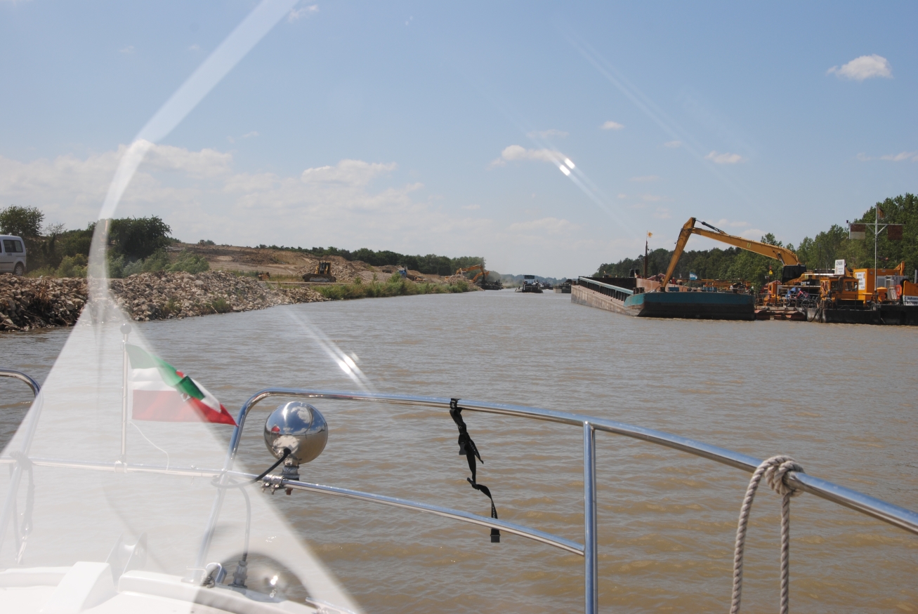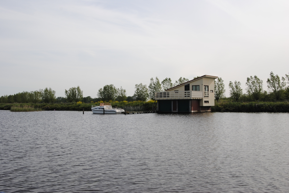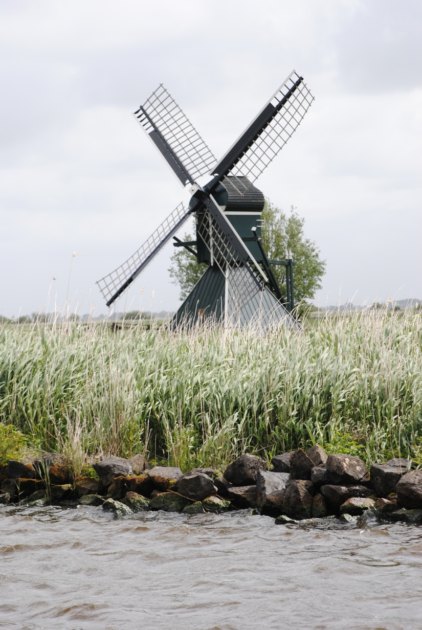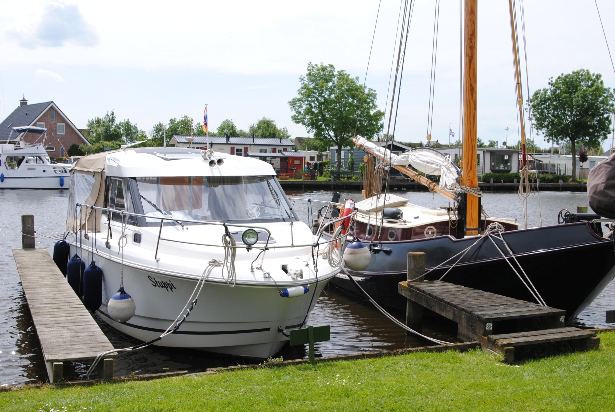 Törn Emmerich - Zwartsluis - Bergum - Groningen - Haren - DEK/RHK/Rhein - Emmerich - mathias - 09.07.2015 Der Törn: Emmerich - Zutphen - Zwartsluis - Echtenerbrug - Bergum - Groningen - Veendam - Ter Apel - HRK - Ems/DEK - RHK - Rhein - Emmerich Die Tour als GPS-Track Die komplette Tour als GIF-Animation Freitag, 29.05.2015 (Für eine größere Ansicht auf das Bild klicken)Um 8:30 Uhr geht es los, zuerst einmal mit dem Auto nach Emmerich. Das geht ganz problemlos, kein Stau, kein dichter Verkehr, so dass ich um 10 Uhr am Hafen bin. Da ich die Woche zuvor schon alles an Bord gebracht und verstaut hatte, geht das aufklaren sehr schnell. Ich informiere noch eben die Hafenmeisterin, damit sie nicht denkt, das Boot wäre gestohlen, wenn es nun ein paar Tage nicht an seinem Platz liegt, dann geht es auch schon los. Abfahrt ist ziemlich genau 11 Uhr, somit müsste ich, zumindest nach meiner Kalkulation, so gegen 15:30 Uhr in Zutphen ankommen. Der Rhein von Emmerich bis Lobith ist trotz des kräftigen Windes relativ ruhig. Das liegt daran, dass der Wind aus Südost bläst, somit nicht gegen den Strom, sondern mehr von der Seite. Nach kurzer Zeit kommt der Abzweig des Griethorner Altrheins an backbord in Sicht, ab hier ist für mich Neuland, weiter war ich noch nie. Die wenige Kilometer später folgende Gabelung in Wal und Pannerdensch Kanaal habe ich mir spektakulärer vorgestellt. Die ist so unscheinbar, das ich zweimal überprüfe, ob ich hier wirklich nach steuerbord abdrehen muss. Aber die Verantwortlichen haben Hinweisschilder aufgestellt, die meine Zweifel zerstreuen. Na das ist ein Kontrast, vorher der „eigentliche“ Rhein, rau und ruppig und nun das hier, völlig ruhig und gemächlich fließt das Wasser dahin. Das Schöne daran ist, das man hier, genau wie auf dem Rhein, keine Geschwindigkeitsbegrenzung hat, von wenigen Ausnahmen abgesehen. Ich möchte aber etwas von der Gegend sehen und fahre daher ganz gemächlich mit ca. 15 km/h vor mich hin. Eigentlich fahre ich ja nur 10 km/h, die restlichen 5 steuert das fließende Wasser bei. Ach ja, hier habe ich die erste Begegnung mit einer „Gierseilfähre“, die in der Mitte des Flusses mit einem Anker fixiert ist, dessen Trosse dann über Ankerflöße bis zur Fähre geleitet wird. Man sollte also genau schauen, auf welcher Seite die Fähre passiert werden kann. So komme ich zügig am nächsten markanten Punkt an, der Teilung des Pannerdensch Kanaals in den Neder Rijn und die Geldersche Ijssel. An dieser Gabelung liegt Arnheim, wovon ich aber nur die „Skyline“ sehen kann, bevor ich nach steuerbord in die Gelderse Ijssel abdrehe. Hier geht es genauso gemütlich weiter, wie zuvor auf dem Pannerdensch Kanaal. Die Hafeneinfahrt zum Vispoorthaven in Zutphen ist leicht zu übersehen. Aber ich habe ja meine Karten und so fahre ich wie empfohlen daran vorbei, um gegen den Strom aufzudrehen und dann zügig einzufahren. Die Einfahrt ist ziemlich schmal und es herrscht starker Neerstrom, dazu kommt der nun sehr böige Wind, aber ich komme gut durch das Nadelöhr und auch an den Meldesteg. Der liegt direkt nach der Einfahrt an steuerbord. Kaum bin ich ausgestiegen, ruft mir einer der anwesenden Skipper zu, ich solle Box 1 nehmen. Die ist als einzige im vorderen Hafenbereich noch frei. Das ist aber gar nicht so einfach. Erst einmal bin ich alleine, zum zweiten ist die Gasse so eng, das man gar nicht komplett vor die Box fahren kann, drittens muss ich rückwärts zwischen den beiden anderen Booten einparken und viertens auch noch mit dem Fingersteg auf der „falschen“ Seite. Für die die das kennen, die Box ist nicht breiter, als die in Harlesiel im letzten Sommer. Auf beiden benachbarten Booten ist die Besatzung anwesend und geht mir hilfreich zur Hand. Ja, nun liege ich hier und bin glücklich meinen ersten „Einhand“-Tag gut hinter mich gebracht zu haben. Da ich im Internet gesehen hatte, dass es hier einen guten Indonesier (Sama Sama) geben soll, beschließe ich heute Abend dort essen zu gehen. Wie sich später herausstellt, eine gute Entscheidung. Aber vorher werden natürlich die Formalitäten beim überaus freundlichen Hafenmeister erledigt. Ich zahle incl. Strom und Kurtaxe 10,10 €, WLAN ist kostenlos, duschen kosten 50 Cent (Münzautomat). Nach dem Essen und einigen Bieren gehe ich recht früh schlafen. Samstag, 30.05.2015 (Für eine größere Ansicht auf das Bild klicken)Ich hatte mir für 7 Uhr den Wecker gestellt, bin aber schon um 6:30 Uhr aus der Koje. So früh ist noch niemand auf und ich habe die Dusche für mich alleine, sehr schön. Die Sanitäranlagen sind einfach aber sauber und in Ordnung. Wenn man kein „Schnellduscher“ ist, sollte man besser zwei 50 Cent-Stücke mitnehmen. Nach der Dusche mache ich erst einmal einen Spaziergang um den Hafen herum um ein paar schöne Fotos zu machen. Gestern ging das wegen des einsetzenden Regens nicht. Heute ist das Wetter sehr freundlich, die Sonne scheint und auch der Wind hat sich etwas gelegt. Zurück auf dem Boot, wird erst einmal gefrühstückt und dann überlege ich mir, wie ich aus der engen Lücke wieder herauskomme. Als ich um kurz vor 9 Uhr beginne, Stuppi zur Abfahrt vorzubereiten, sind die Skipper von nebenan so nett, mir bei der Abfahrt zu helfen. So komme ich ohne Blessuren aus der Box und anschließend auch gut aus dem Hafen. Da man wegen des Neerstromes nicht zu langsam auslaufen kann und aus dem Hafen keine Sicht auf die Ijssel hat, können die sehr nah an der Hafeneinfahrt vorbeifahrenden Talfahrer zum Problem werden. Heute Morgen ist aber noch niemand unterwegs. Ich fahre gemütlich die Ijssel hinunter bis nach Zwolle, eine schöne und abwechslungsreiche Strecke. Am Ufer wechseln sich moderne Architektur mit historischen Gebäuden ab, dazwischen immer mal wieder imposante Industriebauten. Bei Zwolle geht es dann steuerbord zur Spooldersluis, die erste Schleuse auf meiner Rundreise. Hier muss ich ein wenig warten, was bei dem mittlerweile doch sehr starken Win