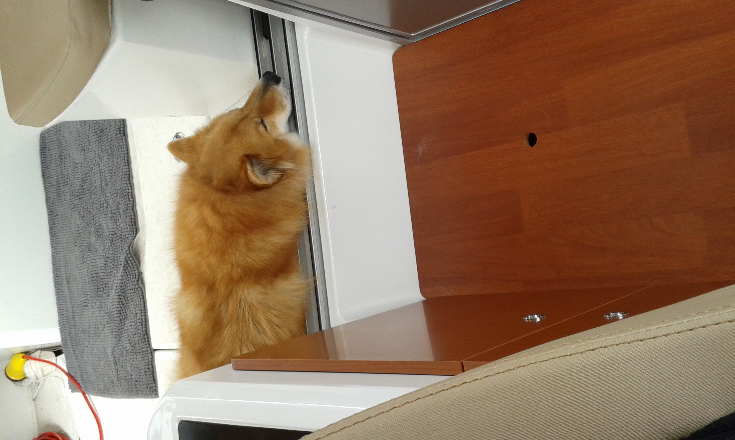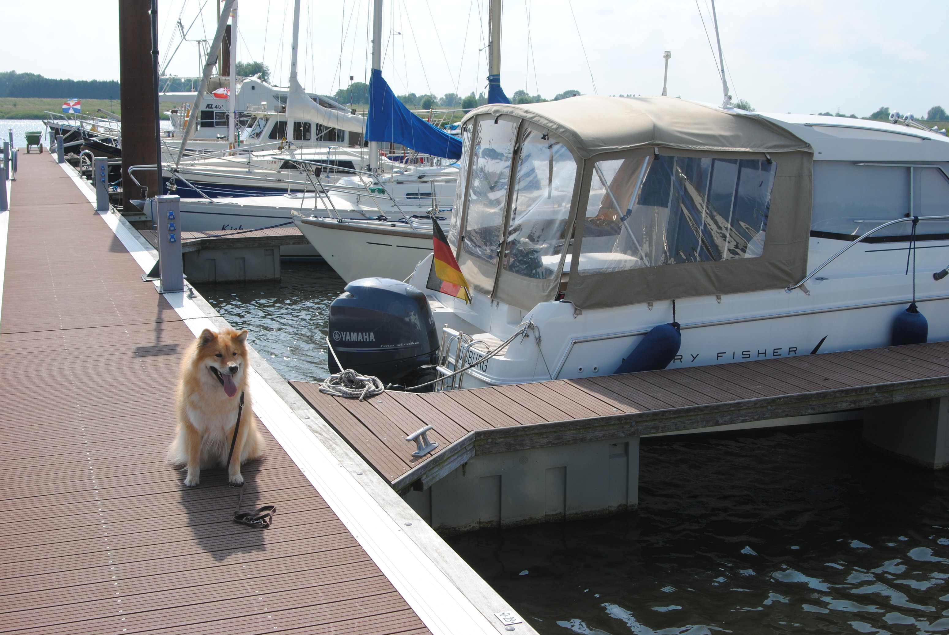 Törnberich Emmerich - Deventer - Ossenzijl - Drachten - Lunegat - Garnwerd - Emmerich - mathias - 08.09.2018 Der Törn: Emmerich - Deventer - Zwartsluis - Ossenzijl - Echtenerbrug - Drachten - Lunegat - Garnwerd - Assen - Dieverbrug - Zwartsluis - Emmerich Die Tour als GPS-Track Die komplette Tour als GIF-Animation Sonntag, 10.06.2018 (Für eine größere Ansicht auf das Bild klicken)Ich hatte geplant, um 10 Uhr in Emmerich die Leinen los zu machen. Da ja auch der Hund mit soll, dauert das Einpacken der Utensilien doch länger, so das ich mit Verspätung von zu Hause wegkomme. Nach gut 1,5 Stunden Fahrt sind wir in Emmerich, laden alles ins Boot und legen um 11:20 Uhr endlich ab. Sobald wir aus dem Hafen raus sind, zeigt der Rhein das er auch Wellen machen kann. Für Reika natürlich eine ungewohnte Situation, der Boden auf dem sie steht bewegt sich? Sie ist sehr aufgeregt und drückt sich fest gegen meine Beine. Als wir in den Pannerdensch-Kanaal abbiegen, wird das Wasser ruhiger. Reika traut sich jetzt schon mal alleine nach achtern, kommt aber sofort zurück, sobald Wellen zu spüren sind. Auf der Gelderse IJssel ist das Wasser dann noch ruhiger. Auf Grund der Verspätung entscheide ich mich, einen Teil der Strecke im Gleitmodus zu fahren. Das macht Reika erstaunlicherweise nicht besonders viel aus, sie bleibt achtern. Mit diesen "Sprinteinlagen" schaffe ich es um 16 Uhr im Jachthaven Deventer anzukommen. Ich fahre an den Meldesteiger, erledige mit dem Hafenmeister die Formalitäten und verlege mein Boot an den angegebenen Liegeplatz. Freundlicherweise hilft mir der Hafenmeister dabei. Nun ist erst einmal Gassi gehen angesagt. Also, Boot dicht gemacht und los. Der Hafen ist ausgesprochen Hunde freundlich und so gibt es genügend Grünflächen in unmittelbarer Umgebung. Nachdem das soweit erledigt ist, ziehe ich mich um um in das hübsche Restaurant des Hafens, Grand Café Windkracht 7, essen zu gehen. Ich bestelle vorab ein Bier, gebracht wird ein Bier für mich und eine Schale Wasser für den Hund, sehr aufmerksam. Das Essen dort ist gut und lecker, sehr zu empfehlen. Wir laufen anschließend noch eine Runde bevor wir wieder an Bord gehen. Damit Reika sich ein wenig heimisch fühlt, stelle ich ihren Futter- und den Wassernapf achtern unter den Tisch, so das die dort für die Reise stehen bleiben können, auch ihre Decke lege ich dort hin. Dann bekommt sie ihre erste Mahlzeit an Bord und hat damit kein Problem. Das ist echt toll. Es wird nun langsam dunkel und ich bin sehr gespannt, welchen Platz sie zum Schlafen auswählen wird. Wie vermutet, bleibt sie achtern auf der Plicht, dort ist es kühler als in der Kabine. Wir schlafen beide sofort ein. Montag, 11.06.2018 (Für eine größere Ansicht auf das Bild klicken)Die diesjährige Tour habe ich mit kurzen Etappen geplant, Abfahrt jeweils so gegen 9 Uhr, in der Vergangenheit zwischen 7 und 8 Uhr. Die Ankunft ist zwischen 12 und 14 Uhr geplant, während ich sonst zwischen 15 und 20 Uhr am Ziel ankomme. Aus alter Gewohnheit wache ich um 6 Uhr das erste mal auf und schaue ganz vorsichtig nach achtern. Reika liegt dort auf der Seite und schläft völlig entspannt. Ich drehe mich um und schlafe noch eine halbe Stunde. Aber dann muss ich einfach aufstehen und den schönen Tag genießen. Als Reika merkt, das ich wach bin, kommt sie mich begrüßen. Nun kommt die nächste ungewohnte Situation, ich will duschen gehen. Also packe ich meine "Klamotten" zusammen und sperre Reika für diese Zeit in die Kabine. Nicht weil ich befürchte, das sie über die Plicht entwischen könnte, sondern als Prophylaxe gegen einen Diebstahl, sie ist schließlich ein Rassehund. Das gefällt ihr natürlich überhaupt nicht, sie eingesperrt und Herrchen geht auch noch weg. Da ist lauter Protest angesagt. Ich ignoriere das und sie beruhigt sich auch schnell wieder. Um es vorweg zu nehmen, dieses Verhalten soll sich auf der kompletten Tour nicht wesentlich ändern. Wieder am Boot angekommen, werde ich begrüßt als wenn ich ein Jahr weg gewesen wäre. Wir machen nun den morgendlichen Spaziergang und sie erledigt brav ihr "Geschäft". Danach gibt es Frühstück, für Reika und mich. Kurz vor 9 Uhr legen wir dann ab und machen uns auf den Weg nach Zwartsluis. Die Fahrt ist ruhig und problemlos. Reika gewöhnt sich langsam an das gleichmäßige schaukeln, lediglich wenn wir einem Boot begegnen und dessen Heckwelle kreuzen, ist sie noch sehr nervös. Heute passieren wir zum ersten mal gemeinsam eine Schleuse. Als wir der Wand näher kommen, wird das wieder deutlich vernehmbar kommentiert und als dann auch noch das riesige Tor hinter uns geschlossen wird, lehnt sie sich vorsichtshalber wieder bei mir an. Sicher ist sicher. Wir kommen kurz nach 13 Uhr in der Marina de Kranerweerd an und finden einen Liegeplatz an der schmalen Landzunge, die den Hafen vom Kanal trennt. Nachdem ich die Formalitäten im Büro des Hafenmeisters erledigt habe, kann Reika auf der Landzunge vor dem Boot wunderschön im Schatten der Bäume liegen und den festen Boden unter den Pfoten genießen. Ich mache es mir derweil auf der Plicht gemütlich. Gegen Abend unternehmen wir einen ausgiebigen Spaziergang in den Ort. Reika findet alles super interessant und schnüffelt und schnüffelt. Auf dem Rückweg kehren wir in dem schönen Restaurant der Marina ein. Reika bekommt ihre Schale Wasser und ich mein Bier. In diesem Hafen habe ich schon mehrfach übernachtet und jedes mal hier gegessen, es ist auch diesmal wieder wirklich gut. Satt und müde machen wir uns auf den Weg zum Boot, wo Reika dann ihr "Abendessen" bekommt. Sehr zu meiner Beunruhigung frisst sie überhaupt nichts. Vielleicht ist diese Tour doch zuviel Aufregung für die Kleine. Ich denke noch lange darüber nach und telefoniere deswegen auch mit meiner Tochter. Das Ziel morgen ist "De Kluft" in Ossenzijl, eine schöne Marina im Grünen. Ich beschließe dort einen Hafentag einzulegen um der Kleinen eine Pause zu gönnen. Die Entscheidung ist 
