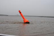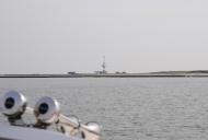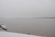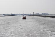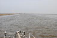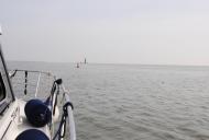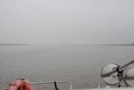 Was mich etwas beruhigt ist, das bei ca. 1,5 Meter Wassertiefe sicher nicht mit den großen Pötten zu rechnen ist. Nach kurzer Zeit löst sich der Nebel auf und die Sicht wird deutlich besser. Weil der Ebbstrom doch ordentlich gegen uns arbeitet, beschließen wir den „Hebel auf den Tisch“ zu legen um im Gleitmodus besser voran zu kommen.