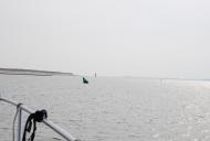 Der Wind weht, wenn man überhaupt von wehen sprechen kann, mit Stärke 2, demzufolge gibt es auch keine Wellen. Wir fahren Richtung Wangerooge um dann in die Telegraphenbalje einzufahren.