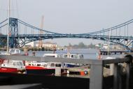 Hier trinken wir, mit einem schönen Blick auf den Hafen und die Kaiser-Wilhelm-Brücke, erst einmal ein Bier