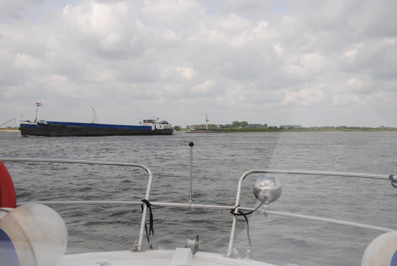 Zurück auf dem Boot, wird erst einmal gefrühstückt und dann überlege ich mir, wie ich aus der engen Lücke wieder herauskomme. Als ich um kurz vor 9 Uhr beginne, Stuppi zur Abfahrt vorzubereiten, sind die Skipper von nebenan so nett, mir bei der Abfahrt zu helfen. So komme ich ohne Blessuren aus der Box und anschließend auch gut aus dem Hafen. Da man wegen des Neerstromes nicht zu langsam auslaufen kann und aus dem Hafen keine Sicht auf die Ijssel hat, können die sehr nah an der Hafeneinfahrt vorbeifahrenden Talfahrer zum Problem werden. Heute Morgen ist aber noch niemand unterwegs.