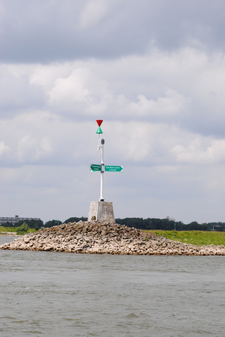 So komme ich zügig am nächsten markanten Punkt an, der Teilung des Pannerdensch Kanaals in den Neder Rijn und die Geldersche Ijssel. An dieser Gabelung liegt Arnheim, wovon ich aber nur die „Skyline“ sehen kann, bevor ich nach steuerbord in die Gelderse Ijssel abdrehe. Hier geht es genauso gemütlich weiter, wie zuvor auf dem Pannerdensch Kanaal.