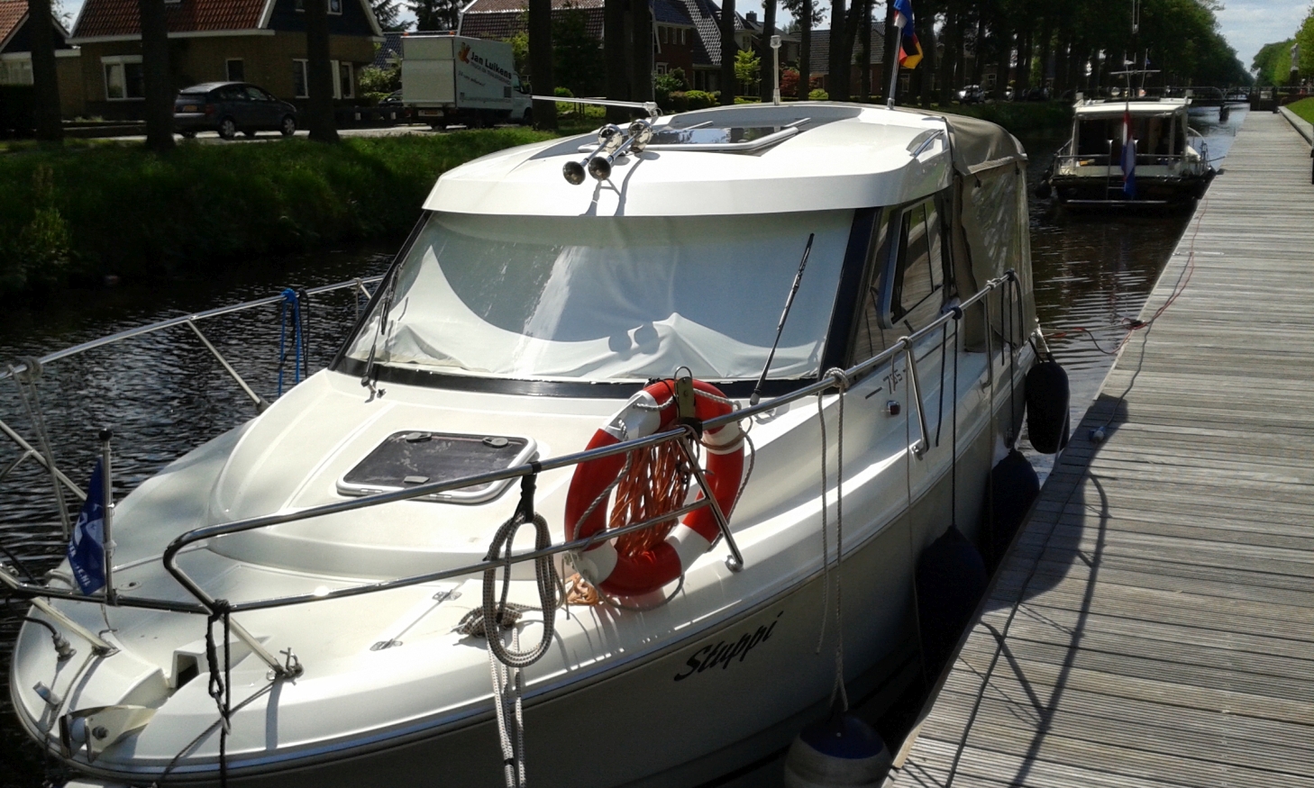 Hier wurde ein ca. 400 Meter langer Steg gebaut, der in der westlichen Hälfte mit im Boden eingelassenen Stromanschlüssen versehen ist. Der Hafenmeister von De Runde kommt morgens und abends vorbei um das Liegegeld zu kassieren. Meine Frau kommt mich besuchen, sie ist mit dem PKW fast gleichzeitig mit mir in Ter Apel angekommen. Wir schauen uns ein wenig den Ort an und gehen anschließend essen. Spät am Abend fährt sie wieder zurück. Ich bleibe noch lange auf und genieße das schöne Wetter. Da ich morgen einen "Hafentag" einlege und deshalb nicht so früh aufstehen werde gehe ich sehr spät in die Koje.