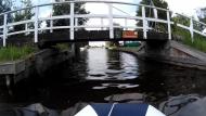 Da die Mücken weiter nerven, stehe ich um 6 Uhr auf, gehe duschen und mache mir mein Frühstück. Heute kommt mein Sohn mit seiner Freundin um mich auf der Fahrt nach Amsterdam zu begleiten. Sie wollen um 8 Uhr hier sein, damit wir pünktlich ablegen können und nicht so spät in Amsterdam ankommen, da die Beiden per Bahn wieder hierhin zurück fahren müssen, ihr Auto steht ja hier. Mein Sohn trifft kurz vor acht ein und wir legen recht pünktlich ab. Es geht raus aus dem Hafen nach steuerbord auf die Gouwe. Die kommenden Brücken sind für uns auch geschlossen hoch genug, so das wir ohne Verzögerung gut voran kommen. Die erste Brücke, bei der es spannend wird, ist die in Waddinxveen, sie ist geschlossen 2,50m hoch, Stuppi 2,45m. Ok, das ist einer der Gründe, warum mein Sohn mich begleitet, wir versuchen es. Er stellt sich so ins Heck, das er über das Cockpitdach peilen kann während ich extrem langsam und vorsichtig an die geschlossene Brücke heran fahre. Meine Frage, passt es, wird bejaht. Somit fahren wir darunter durch und alles geht gut.