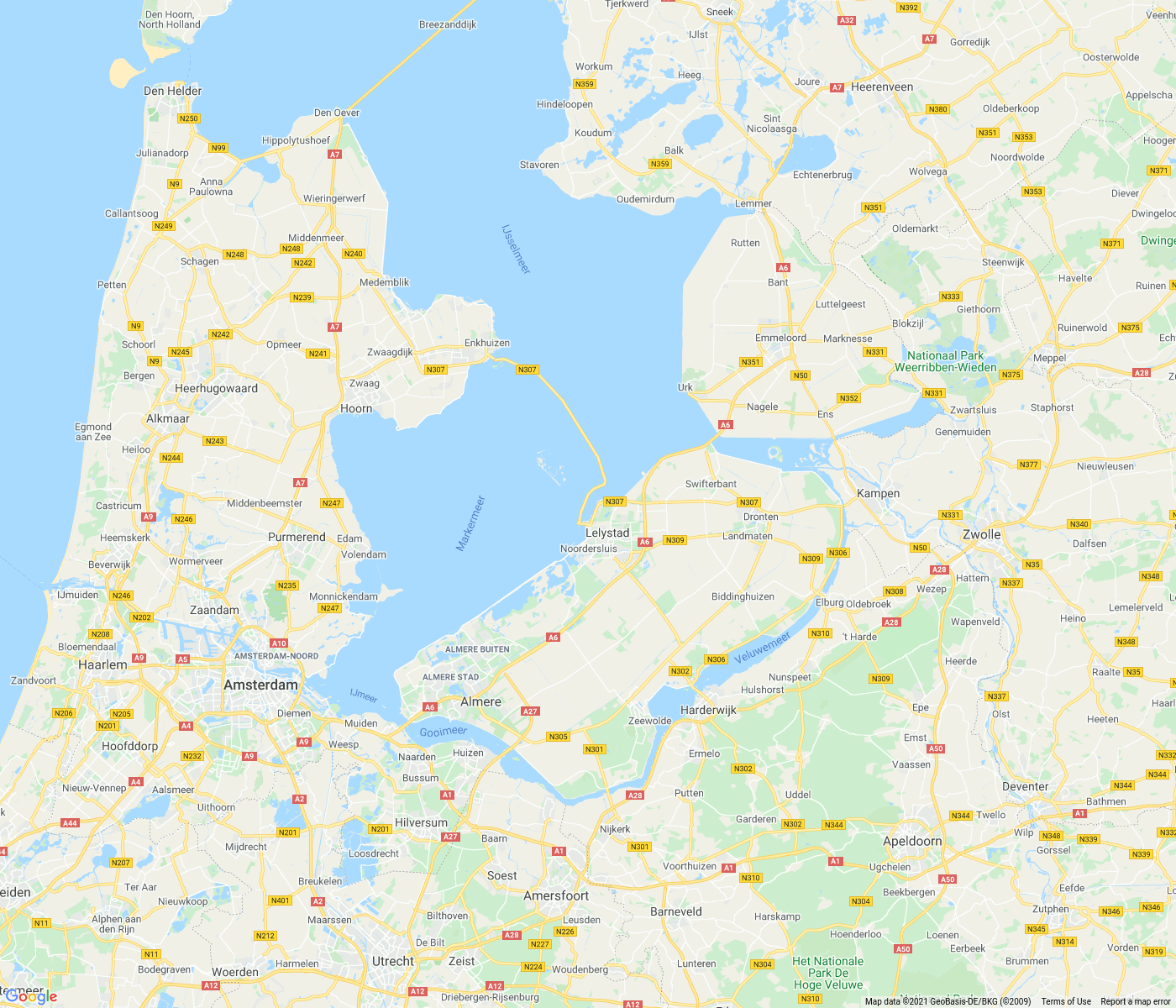 Kurz vor 6 Uhr und ich bin wach. Das Wetter sieht gut aus, die Sonne scheint, kaum Wolken am Himmel und kein Wind. Ich gehe duschen und mache mir anschließend mein Müsli und meinen Kaffee. Um 7:30 Uhr heißt es „Leinen los“, denn meine heutige Etappe ist sportlich, knapp 110 Kilometer bis nach Blokzijl. Erst einmal geht es recht gemütlich durch den Amsterdamer Hafen Richtung Oranjesluizen. Dort angekommen kann ich sofort mit dem vor mir fahrenden Segler in die Kammer. Der Fall beträgt nur wenige Zentimeter und wir können ausfahren. Bei der kurz dahinter liegenden Brücke bin ich klar im Vorteil, ich kann bei geschlossener Brücke durch, der Segler muss auf die Öffnung warten. Da das Wasser im Markermeer völlig ruhig ist, kann ich hier schnell fahren, so das ich bereits kurz nach 10 Uhr an den Houtribsluizen bin. Auch hier keine Wartezeit. Es geht nach der Schleuse erst Richtung Ketelbrug,