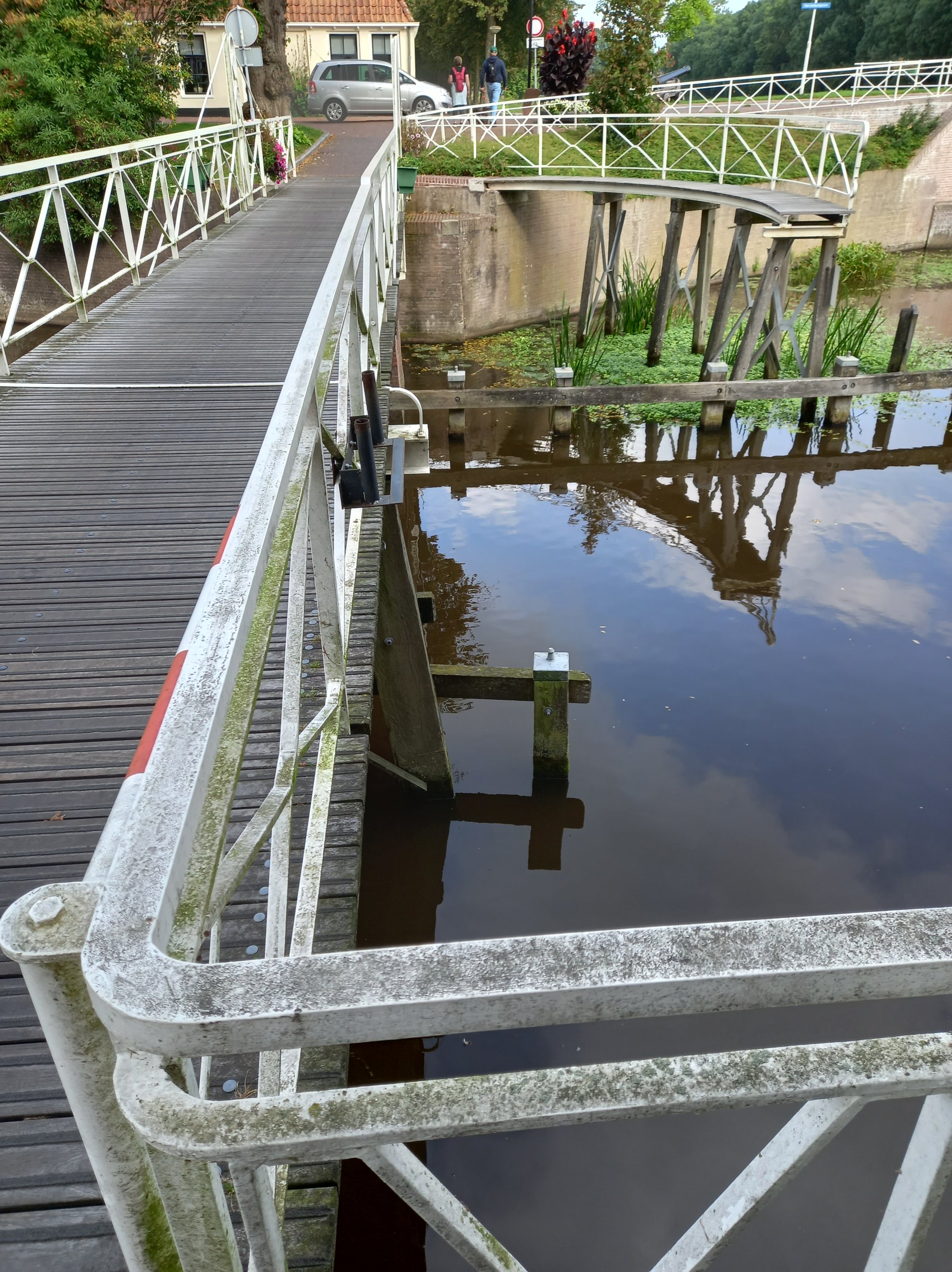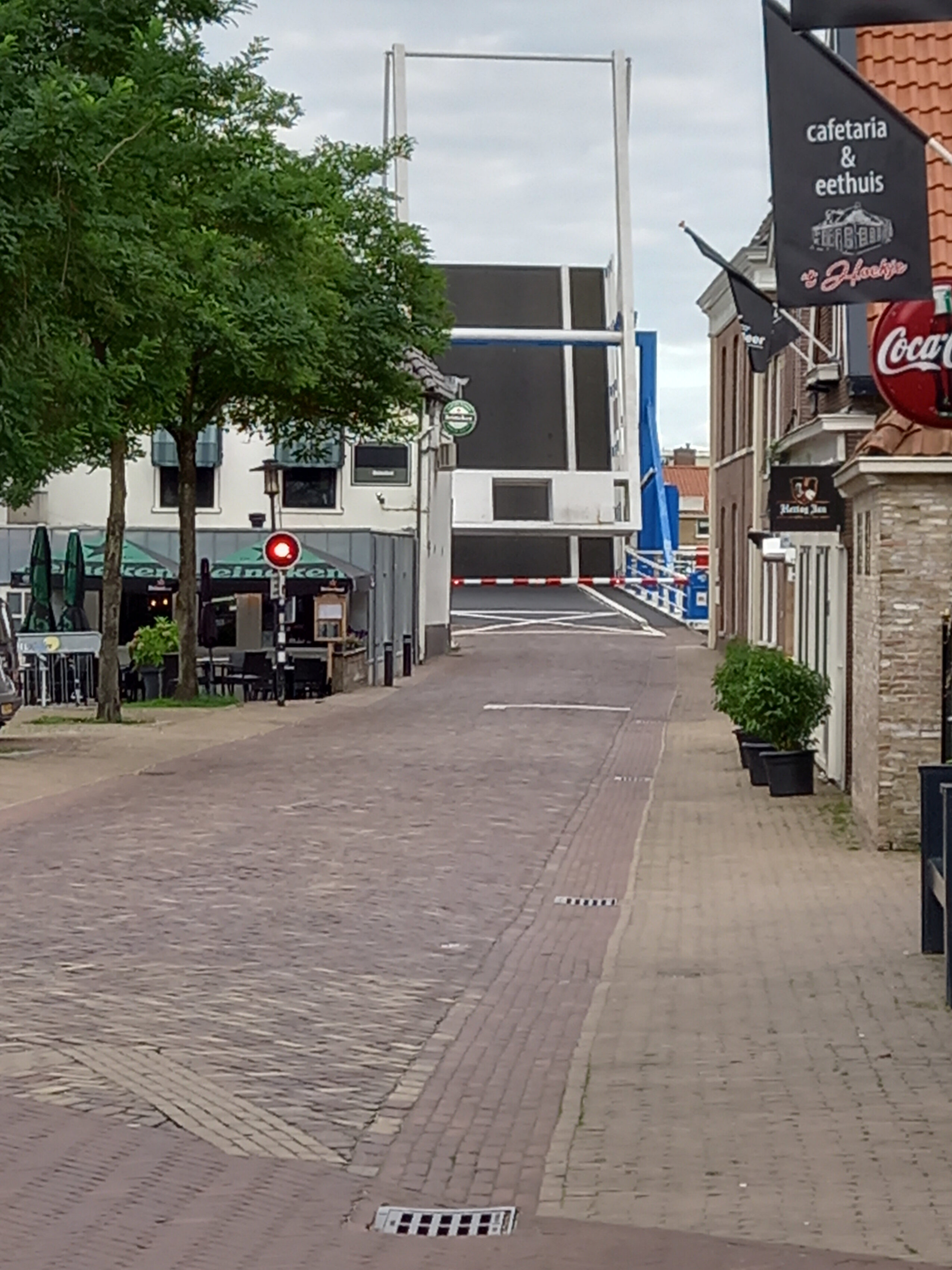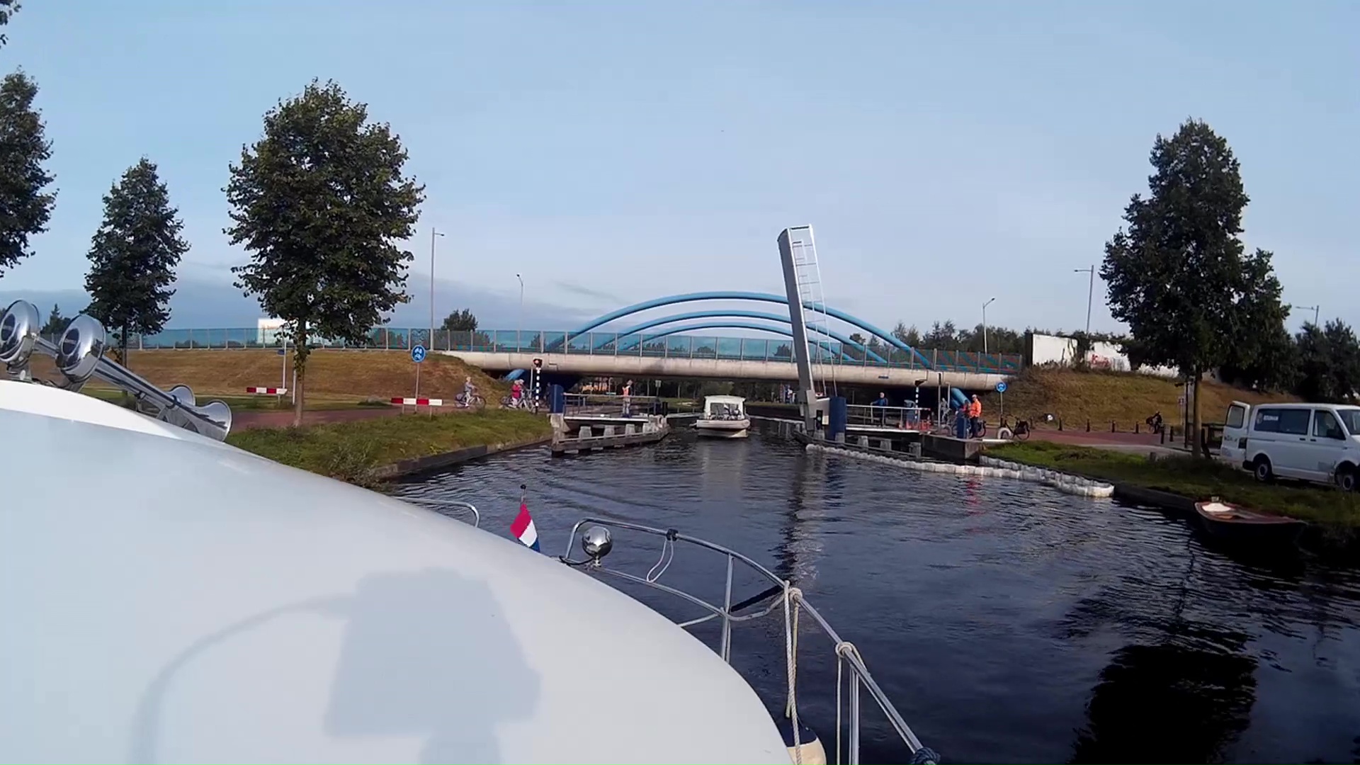 Gestern Abend habe ich mit dem Hafenmeister vereinbart, dass ich um 10 Uhr gerne weiter fahren möchte. So habe ich heute morgen Zeit in Ruhe zu duschen und zu frühstücken. Kurz vor 10 Uhr mache ich dann die Leinen los. Die beiden anderen Boote im Hafen sind schon auf dem Weg zur ersten Brücke und warten auf die Öffnung. Als ich dort ankomme, wird die Brückenöffnung gerade eingeleitet. Da der Hafenmeister auch die Veenlustbrug öffnet und er mit dem Fahrrad schneller dort ist als wir mit den Booten, wechselt das Licht auf Grün als wir ankommen.