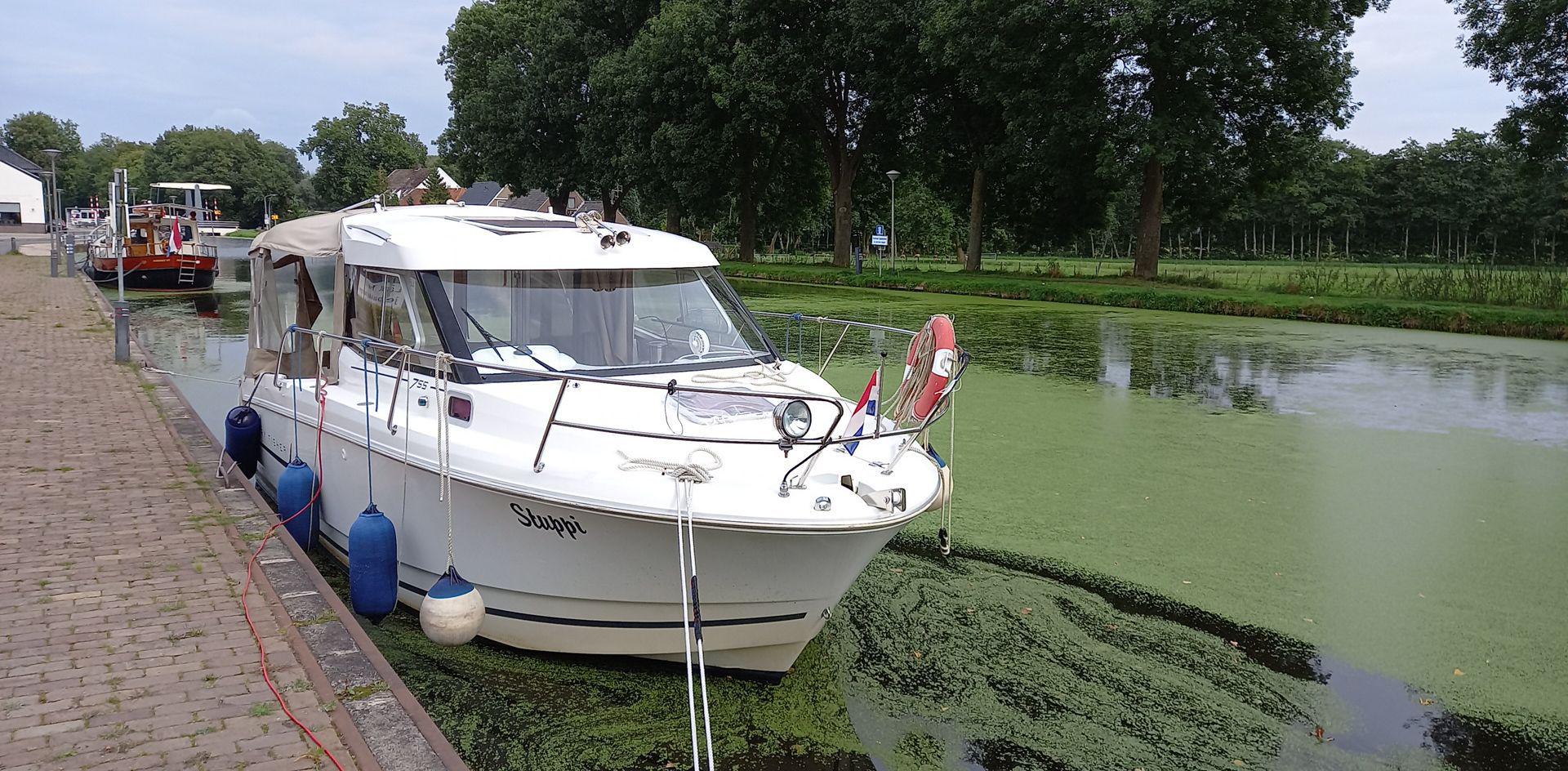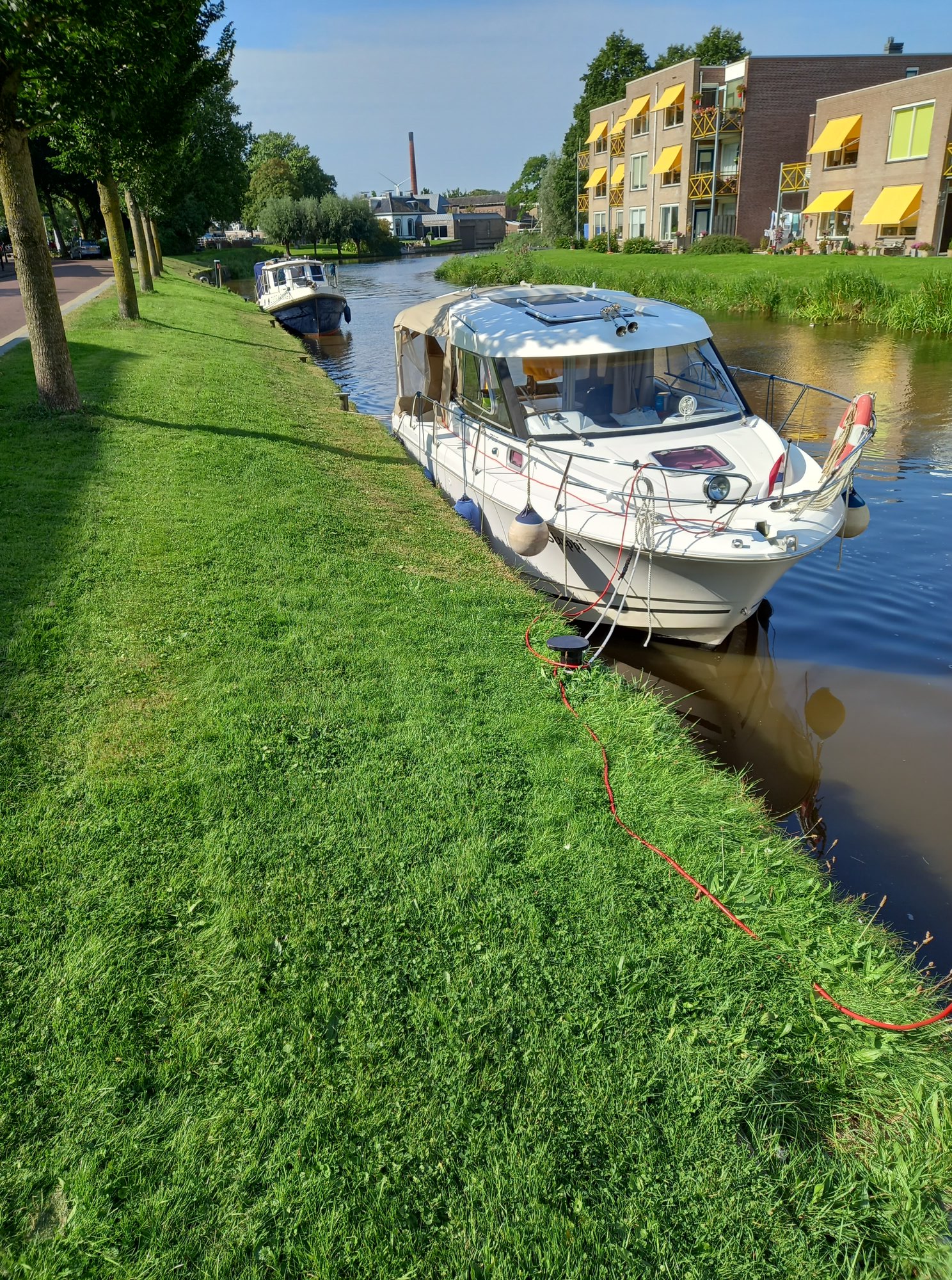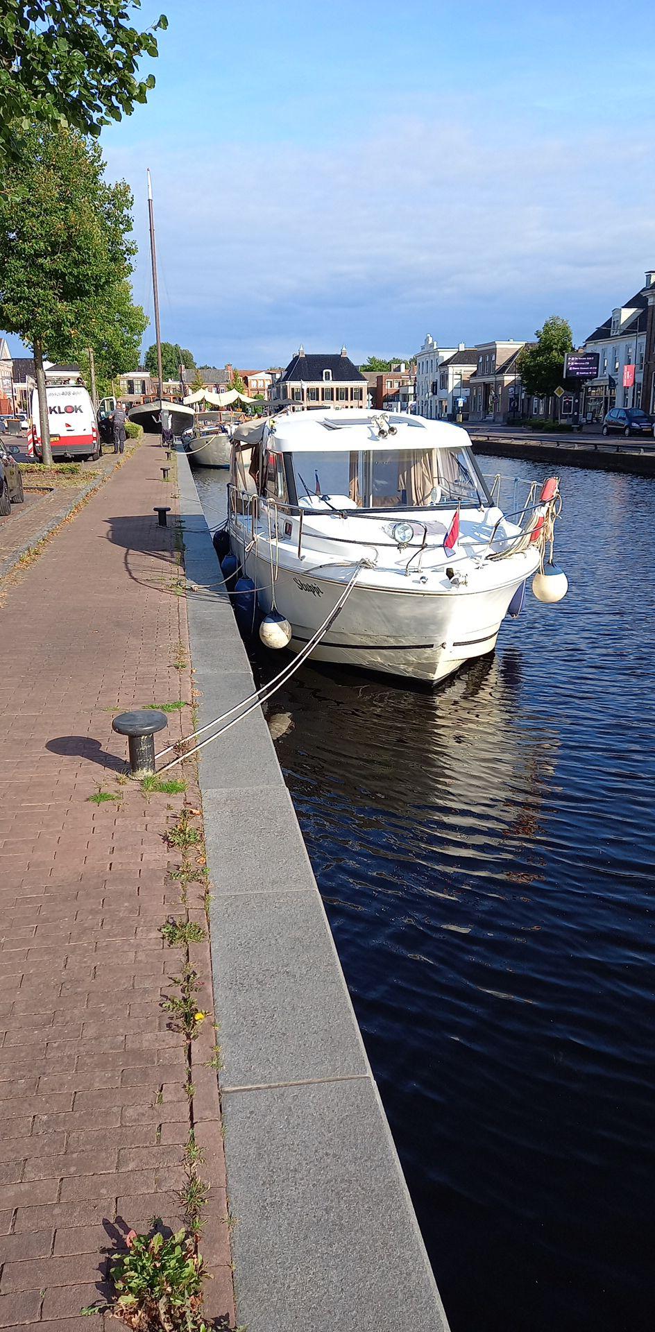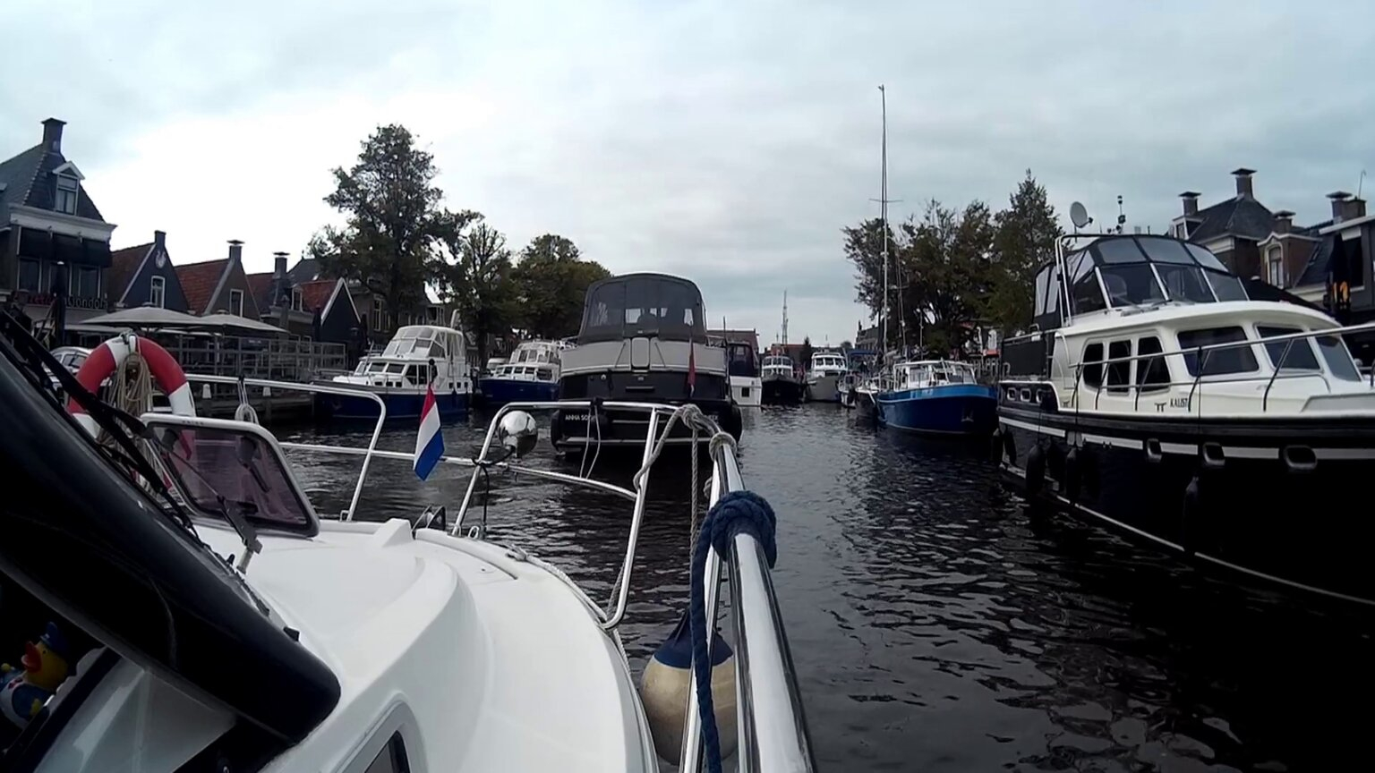 Bis zur Zijlroedebrug ist der Kanal nun etwas breiter, so dass auch der Skipper vor mir es schafft, einigermaßen geradeaus zu fahren. Nach der Brückenpassage kann ich endlich überholen und habe nun freie Fahrt. Die restliche Strecke über Sloten nach Woudsend kann ich ohne Probleme fahren. In Woudsend angekommen, ist der Jachthafen de Rakken schon sehr voll. Deshalb weist mir der Hafenmeister einen Platz längsseits am Steg A zu. Ich zahle meine Liegegebühren und mache Stuppi an der zugewiesenen Stelle fest.