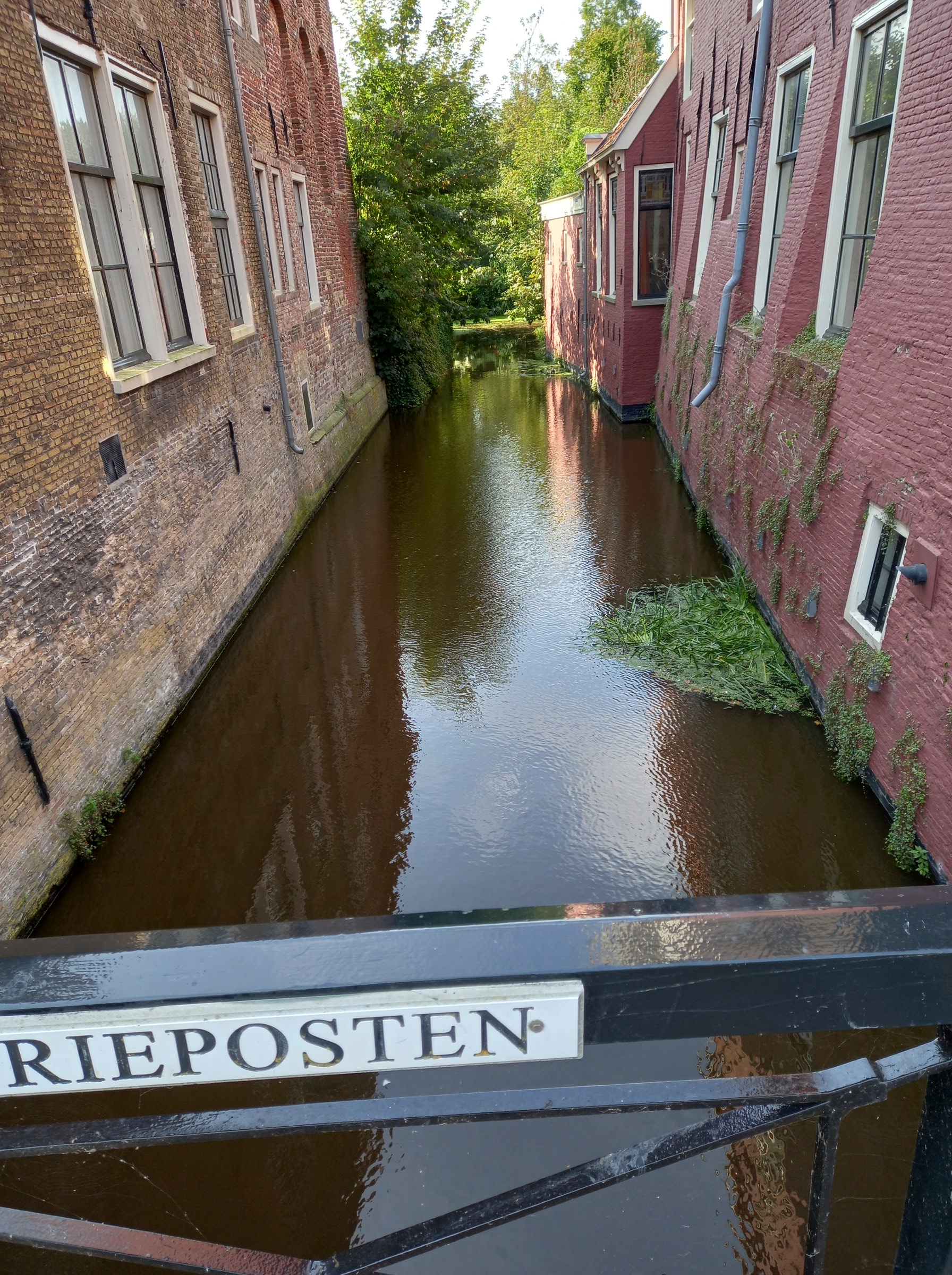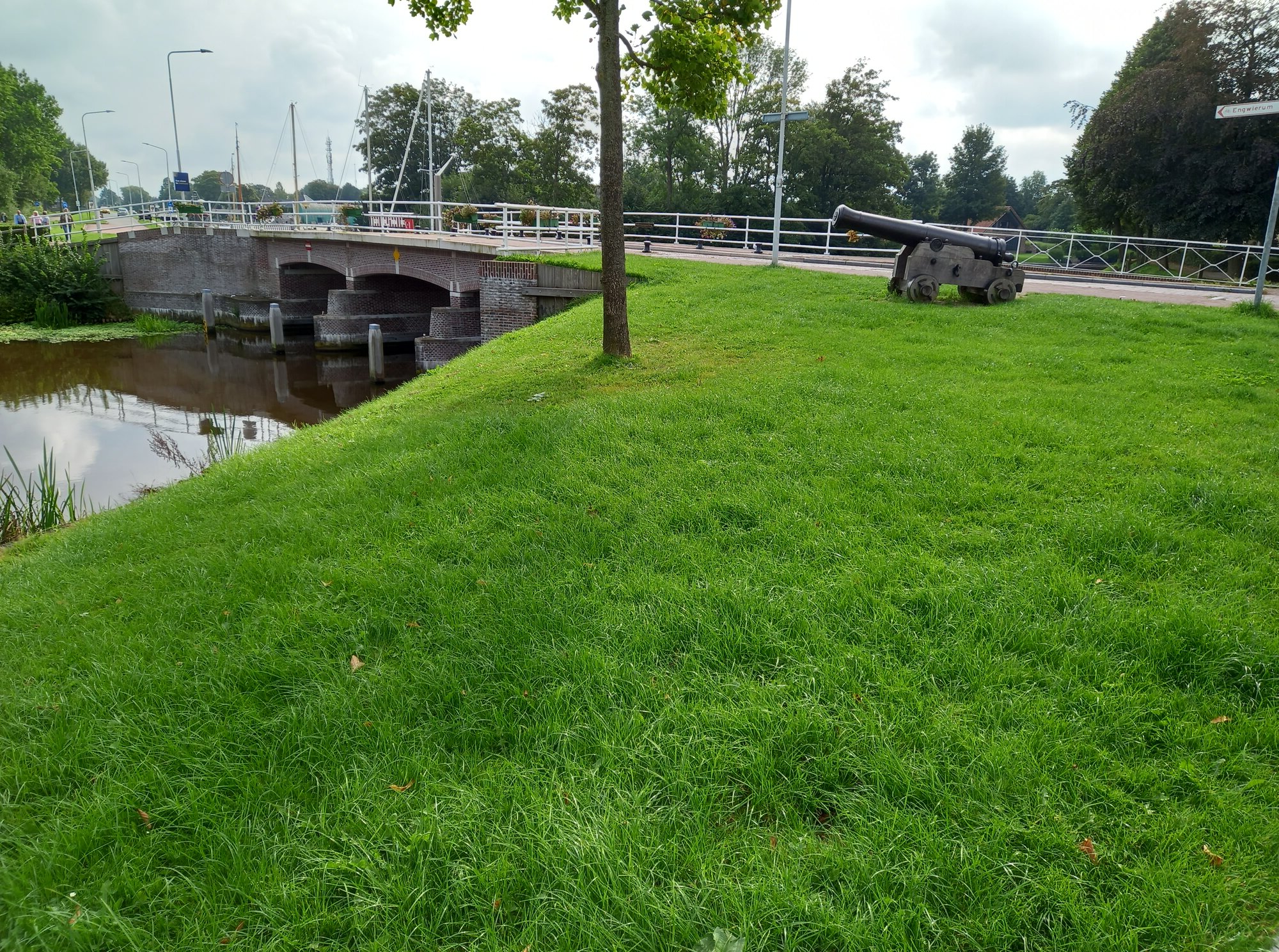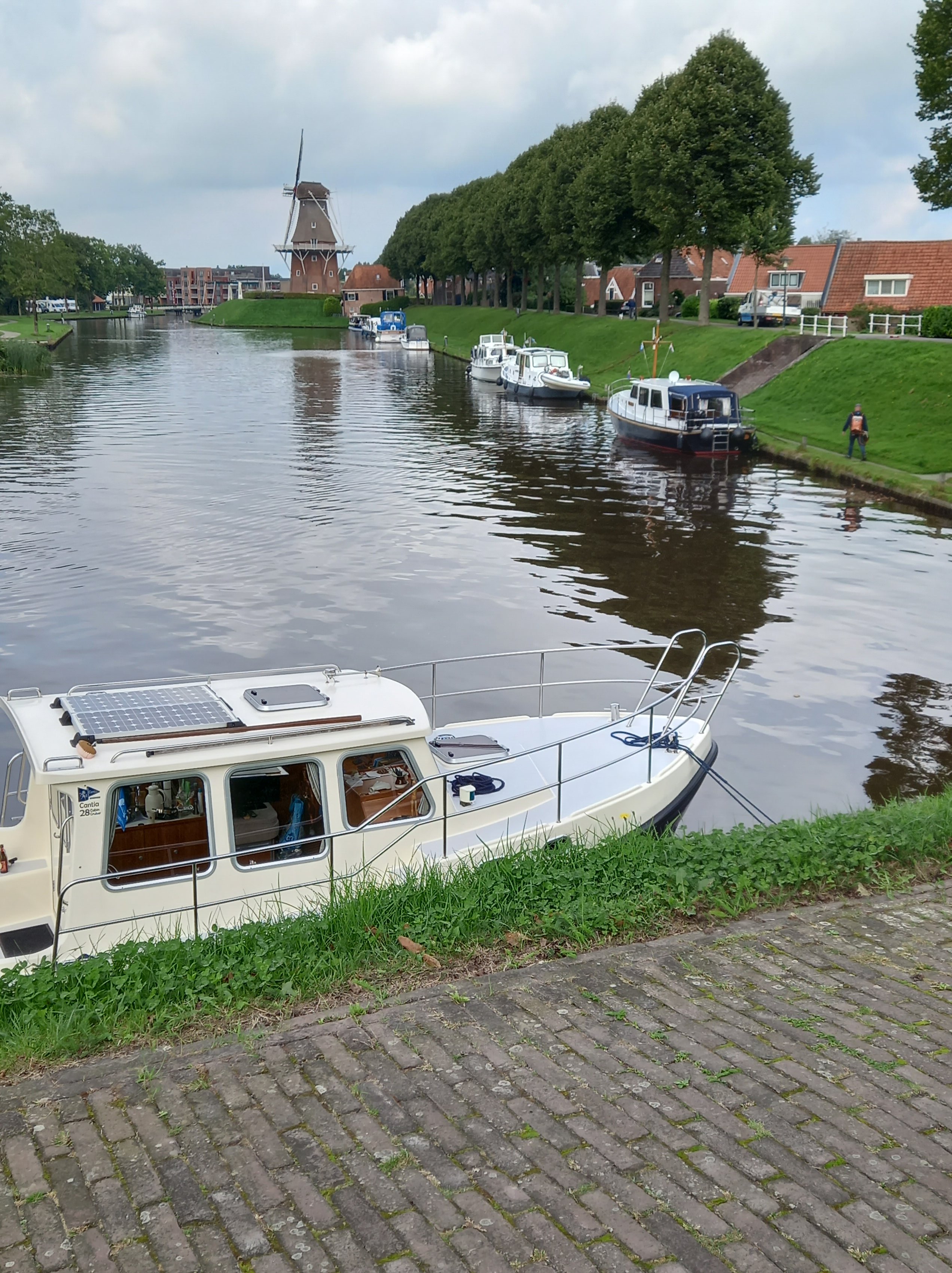 In Dokkum werde ich heute einen Hafentag einlegen. Letztes Jahr bin ich ebenfalls von Leeuwarden über das Dokkumer Ee bis hierher gefahren. Als ich dabei durch Burdaard fuhr, hatte die dortige Brücke Mittagspause. Ich habe vor der Brücke an der Kade angelegt, bin beim Festmachen des Bootes gestolpert und auf den Rücken gefallen. Dabei habe ich mir einen Lendenwirbel gebrochen. Ich konnte zwar weiterfahren, habe mir Dokkum wegen der Schmerzen aber nicht wirklich anschauen können. Das möchte ich heute nachholen. Da ich ja viel Zeit habe, stehe ich erst um 8 Uhr auf und frühstücke in Ruhe. Anschließend mache ich das Boot sauber. Mittlerweile ist es kurz vor 11 Uhr. Ich mache mich auf, den Ortskern auf dem alten Wallgraben zu umrunden.