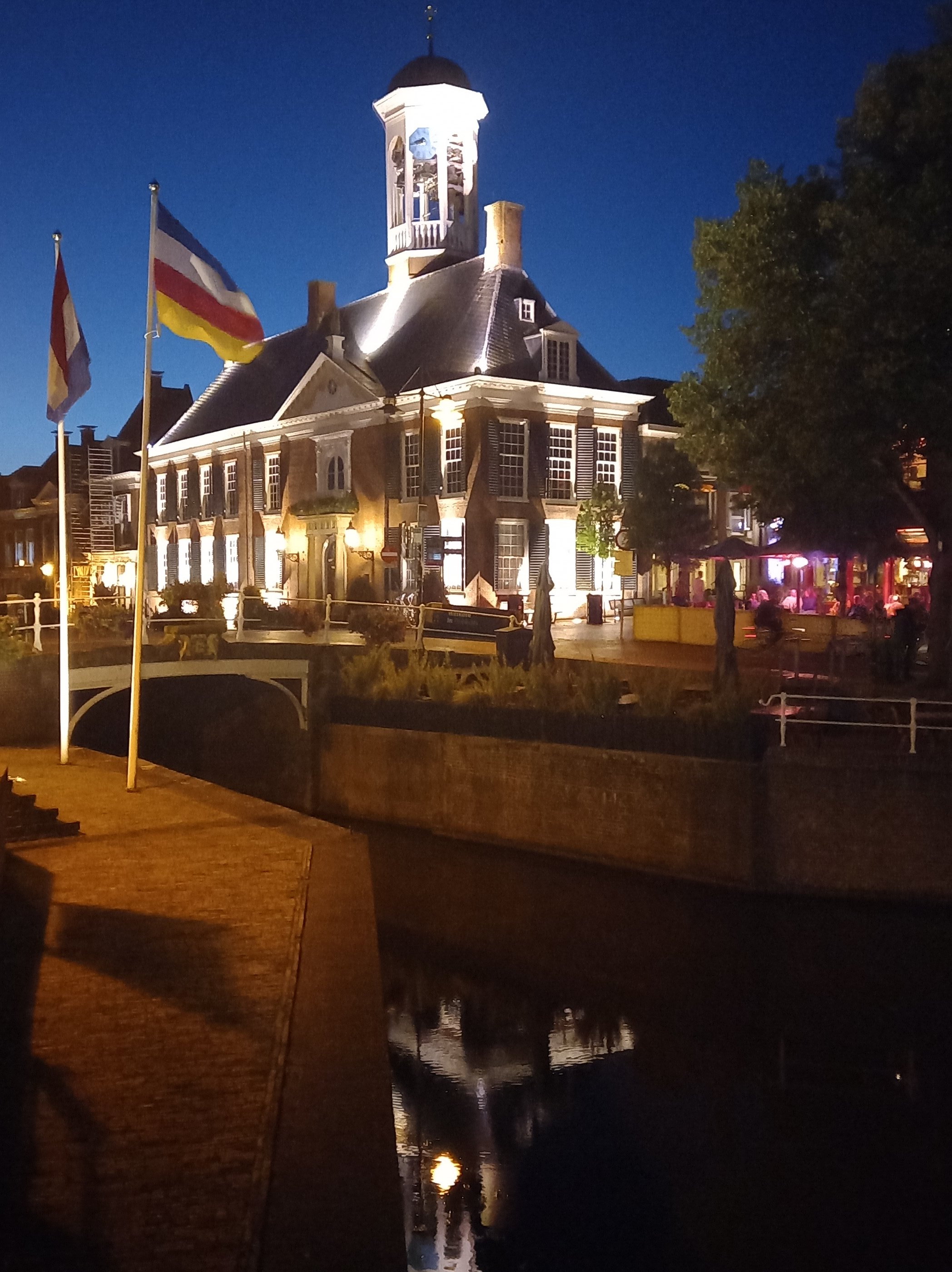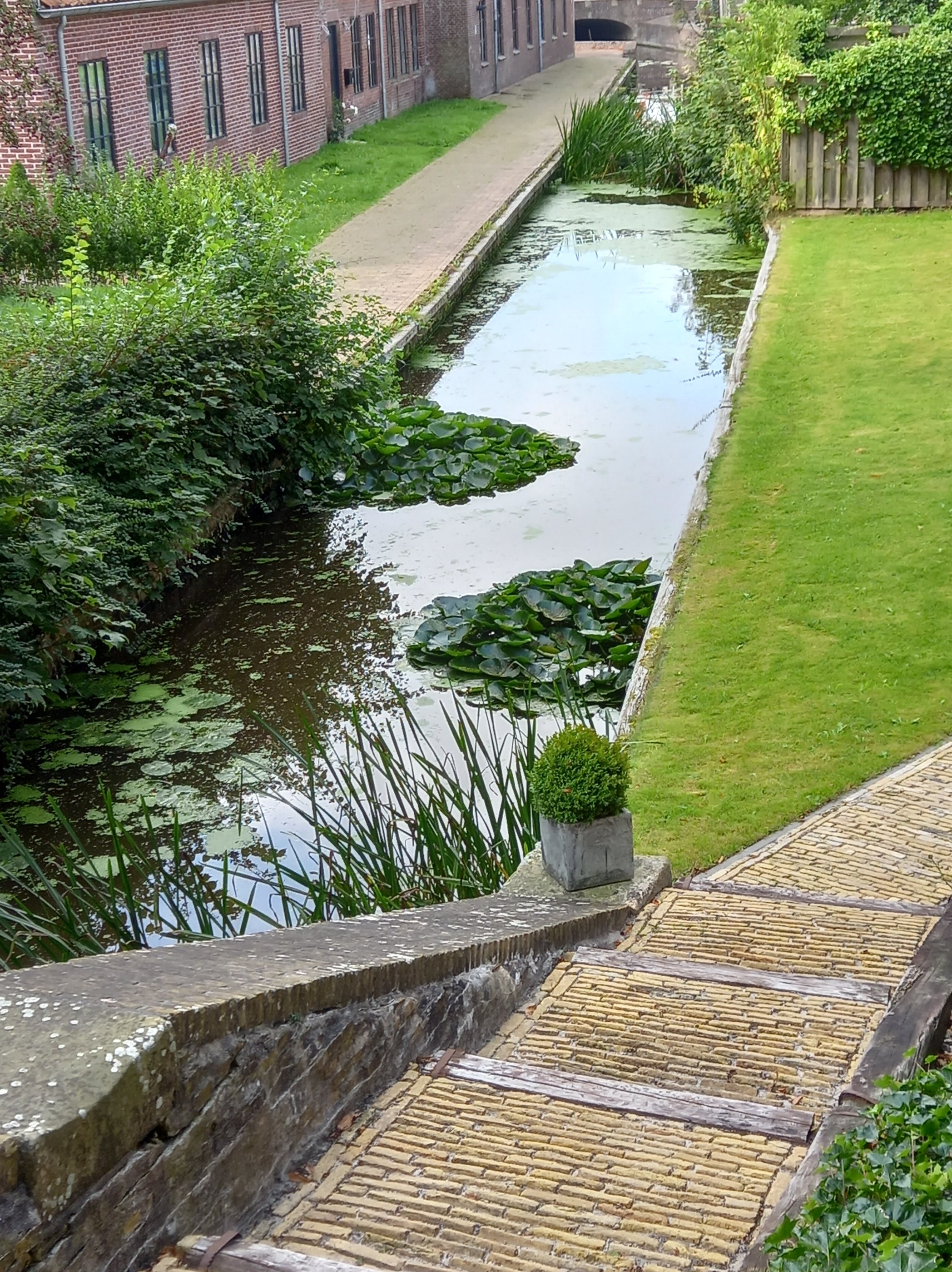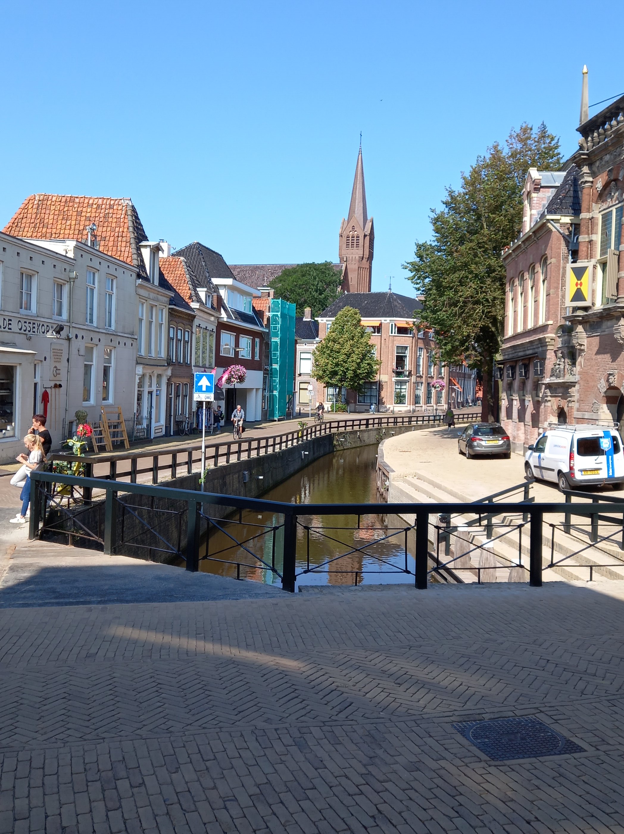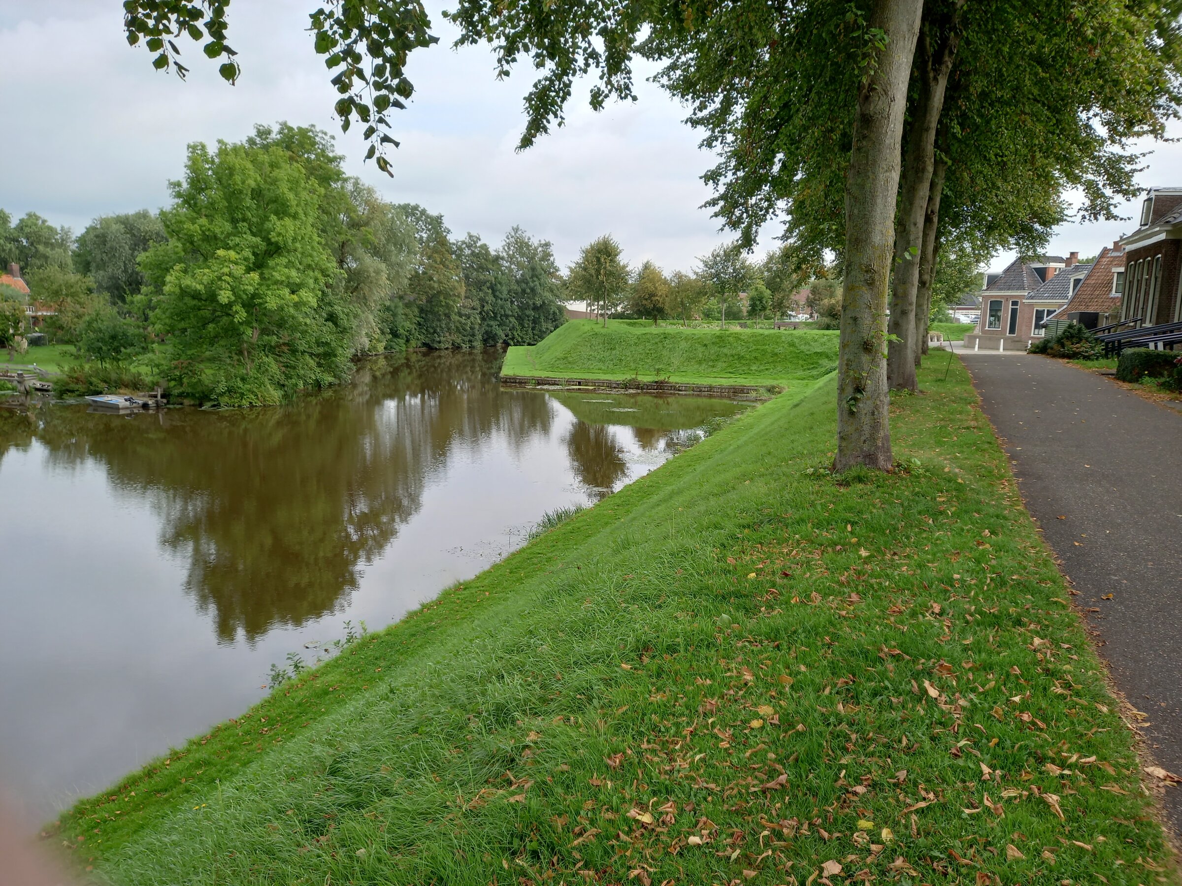 In Dokkum werde ich heute einen Hafentag einlegen. Letztes Jahr bin ich ebenfalls von Leeuwarden über das Dokkumer Ee bis hierher gefahren. Als ich dabei durch Burdaard fuhr, hatte die dortige Brücke Mittagspause. Ich habe vor der Brücke an der Kade angelegt, bin beim Festmachen des Bootes gestolpert und auf den Rücken gefallen. Dabei habe ich mir einen Lendenwirbel gebrochen. Ich konnte zwar weiterfahren, habe mir Dokkum wegen der Schmerzen aber nicht wirklich anschauen können. Das möchte ich heute nachholen. Da ich ja viel Zeit habe, stehe ich erst um 8 Uhr auf und frühstücke in Ruhe. Anschließend mache ich das Boot sauber. Mittlerweile ist es kurz vor 11 Uhr. Ich mache mich auf, den Ortskern auf dem alten Wallgraben zu umrunden.