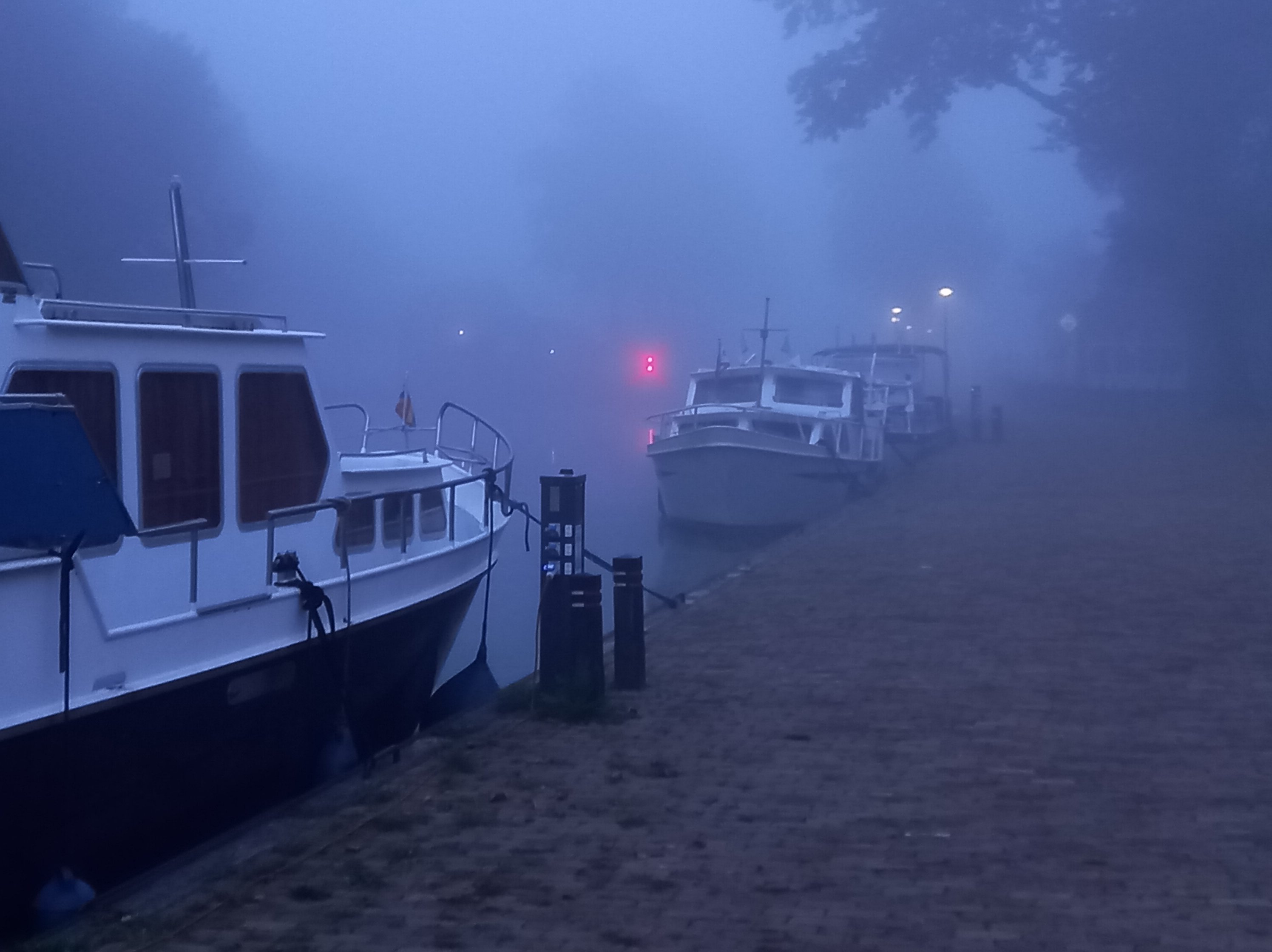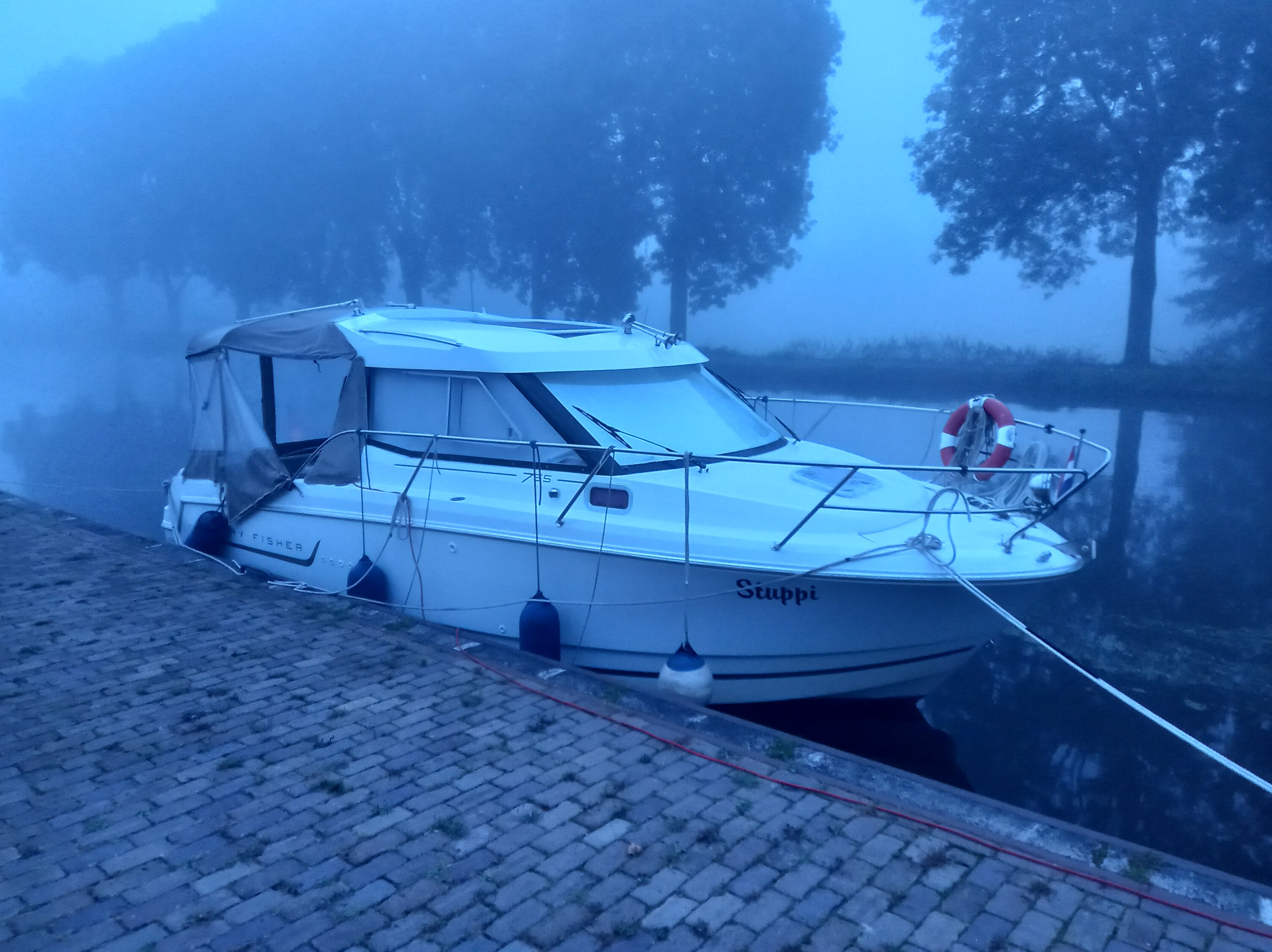 Ich gehe zurück zum Boot. Da es noch recht früh am Abend ist, mache ich mich daran, eine gerissene Naht an der Persenning zu reparieren. Dabei komme ich mit dem Ehepaar des Bootes hinter mir ins Gespräch. Sie fragen, ob ich öfter mit dem Boot in den Niederlanden unterwegs bin. Als ich das bejahe, sind sie sehr interessiert an Informationen. Ich lade sie kurzer Hand ein an Bord zu kommen. Wir unterhalten uns nett und ich kann ihnen einige Tipps geben. Als die beiden wieder von Bord sind, beende ich meine Arbeit und setze mich anschließend an den Rechner. Auf das Abendessen verzichte ich heute, die Pancakes wirken noch nach. Spät am Abend lege ich mich dann schlafen.